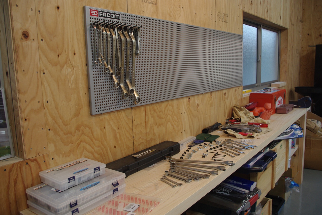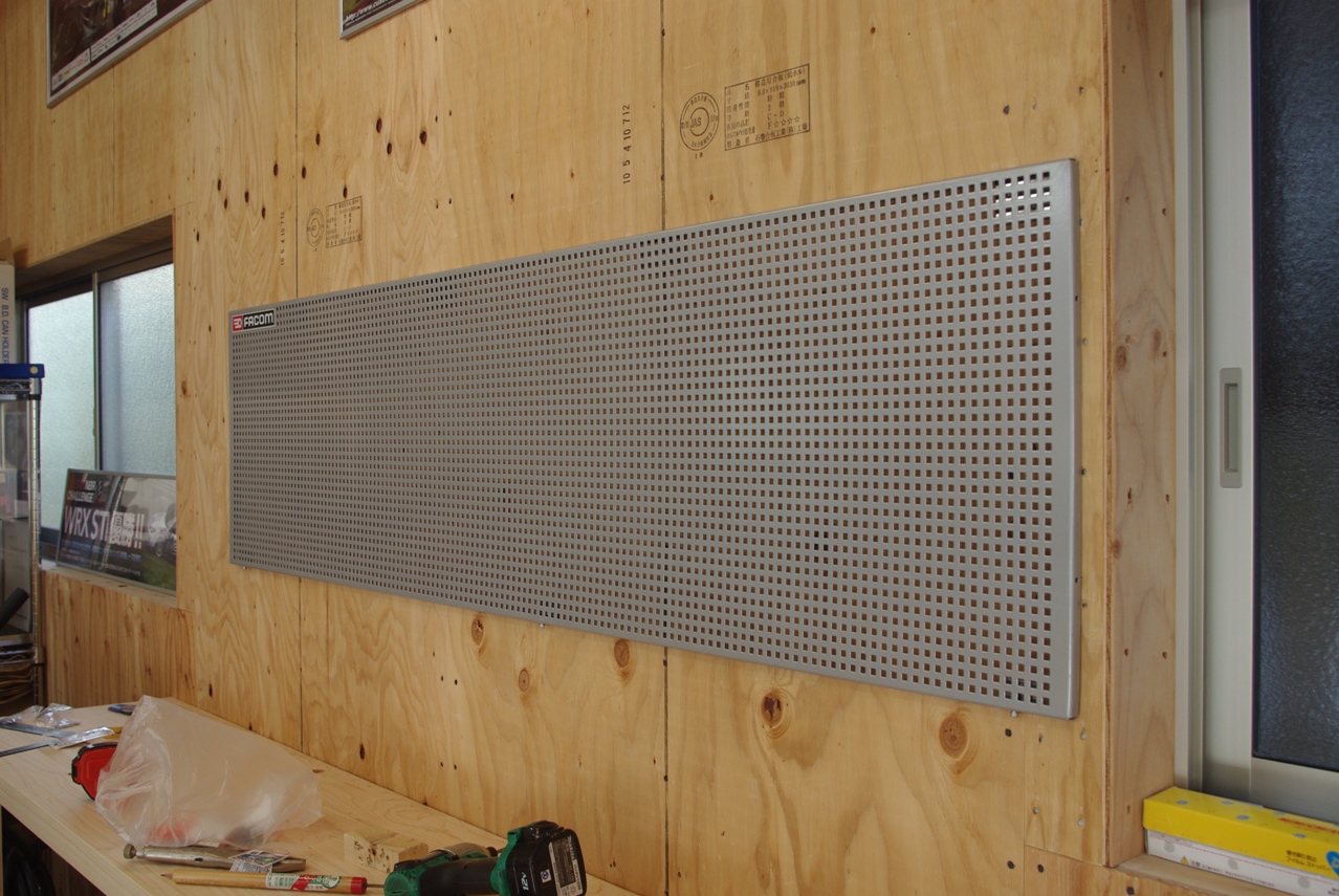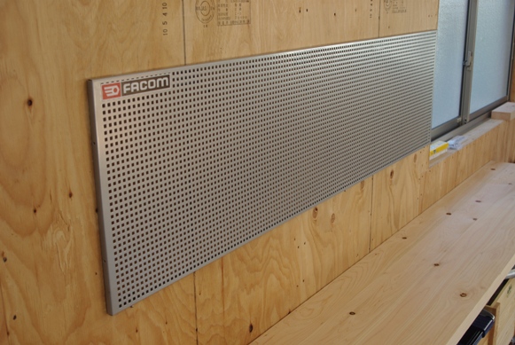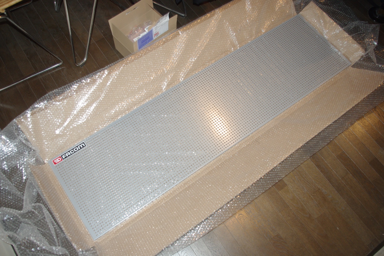 この上辺左側のパネル固定用金具だけは、パネル面にFACOMのネームプレートがあるので、どこでも穴が開けられます。