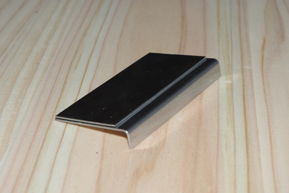 まず、パネルの上部を壁に取り付けるための金具を製作するために、ステンレス板を加工します。