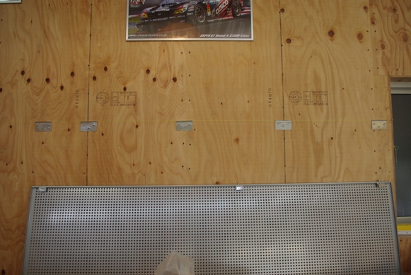 壁面は厚さ12oのコンパネですが、裏に柱のある場所を選んで金具を固定したいので、金具は5個必要だと考えました。