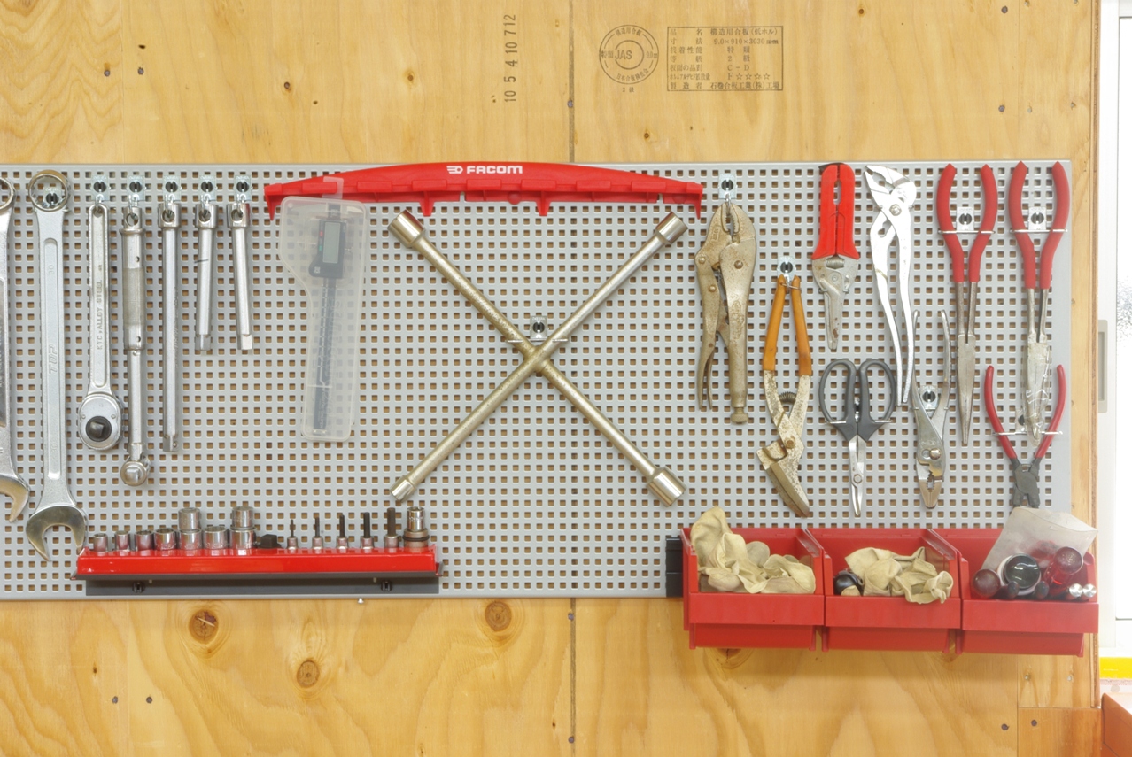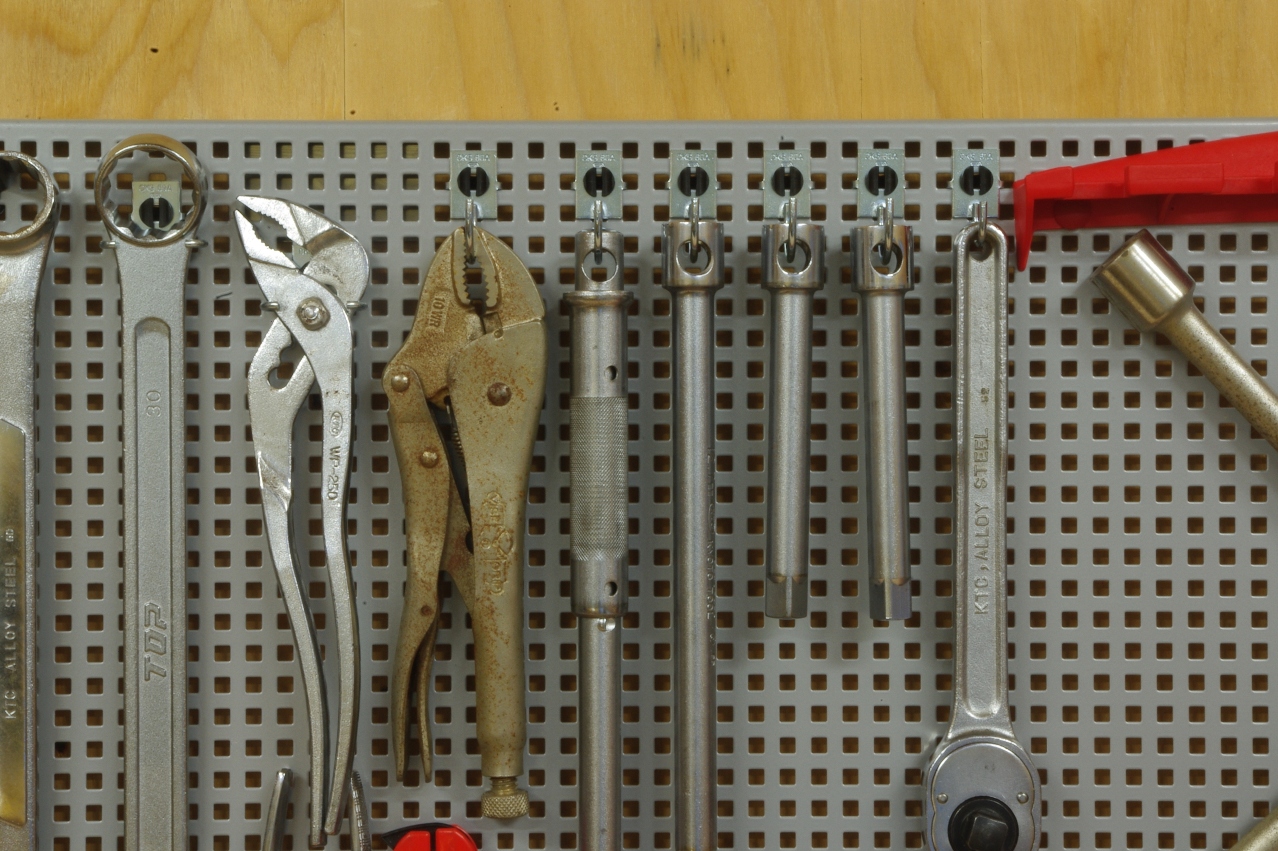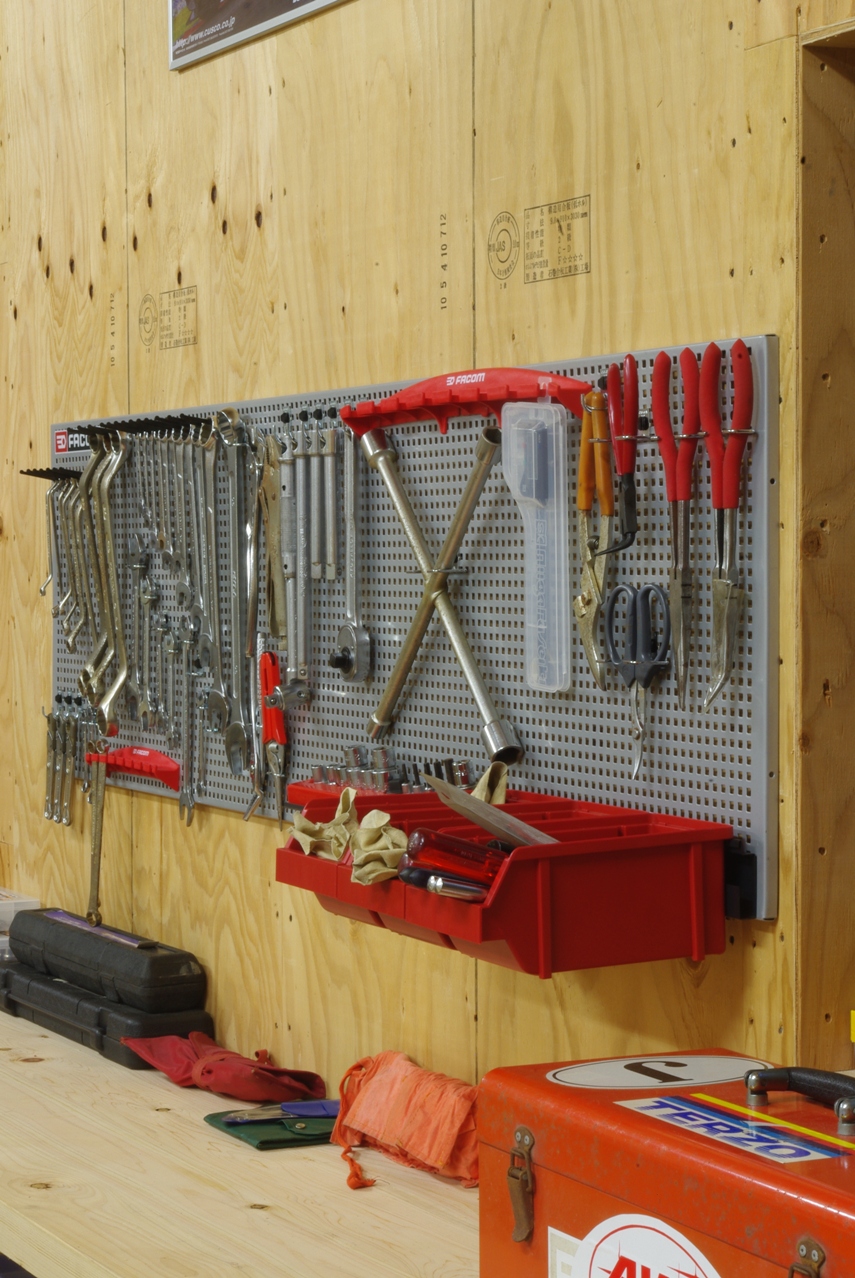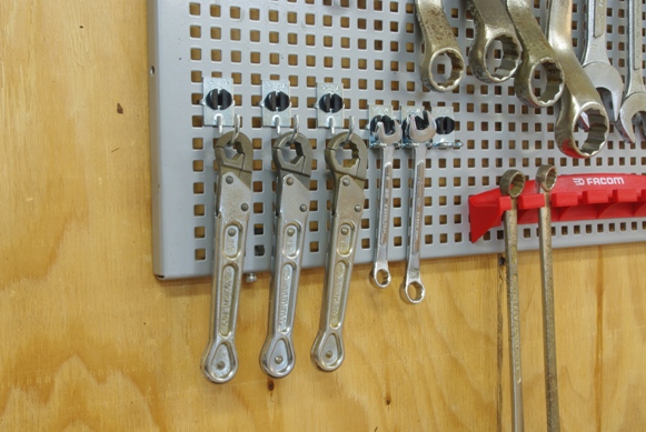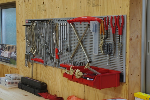 作業中必要なスパナ等を選んで引っ掛けるようにしようと考えています。