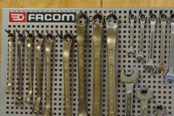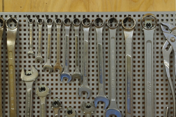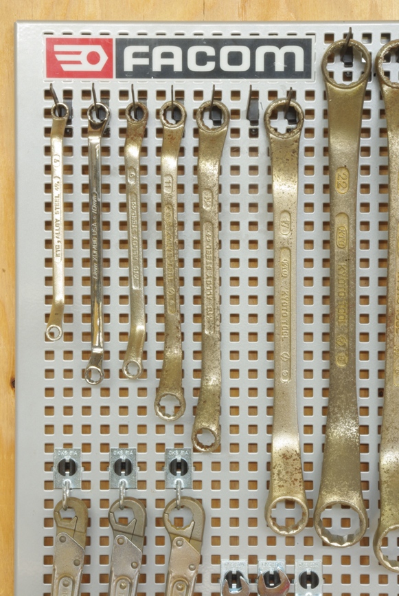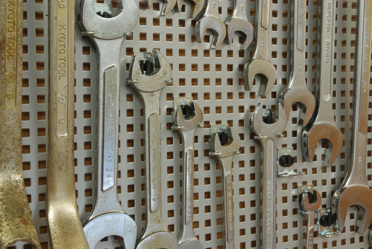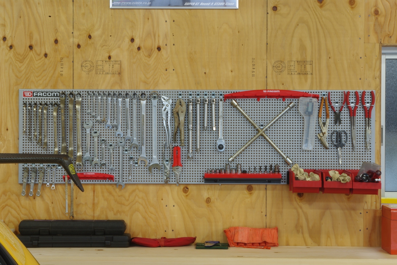 作業中必要なスパナ等を選んで引っ掛けるようにしようと考えています。