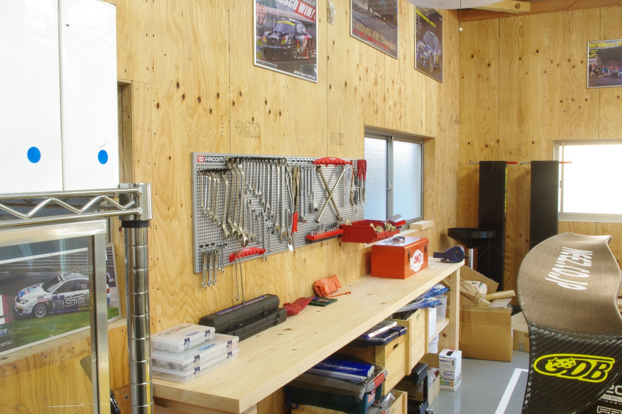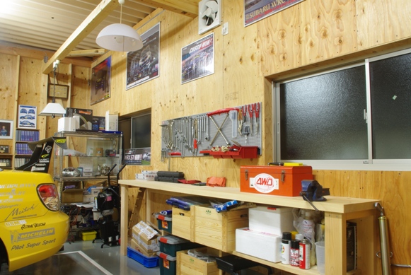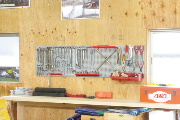 このパネルフックシステムの導入で、だいぶガレージの体裁も整ったように見えます。