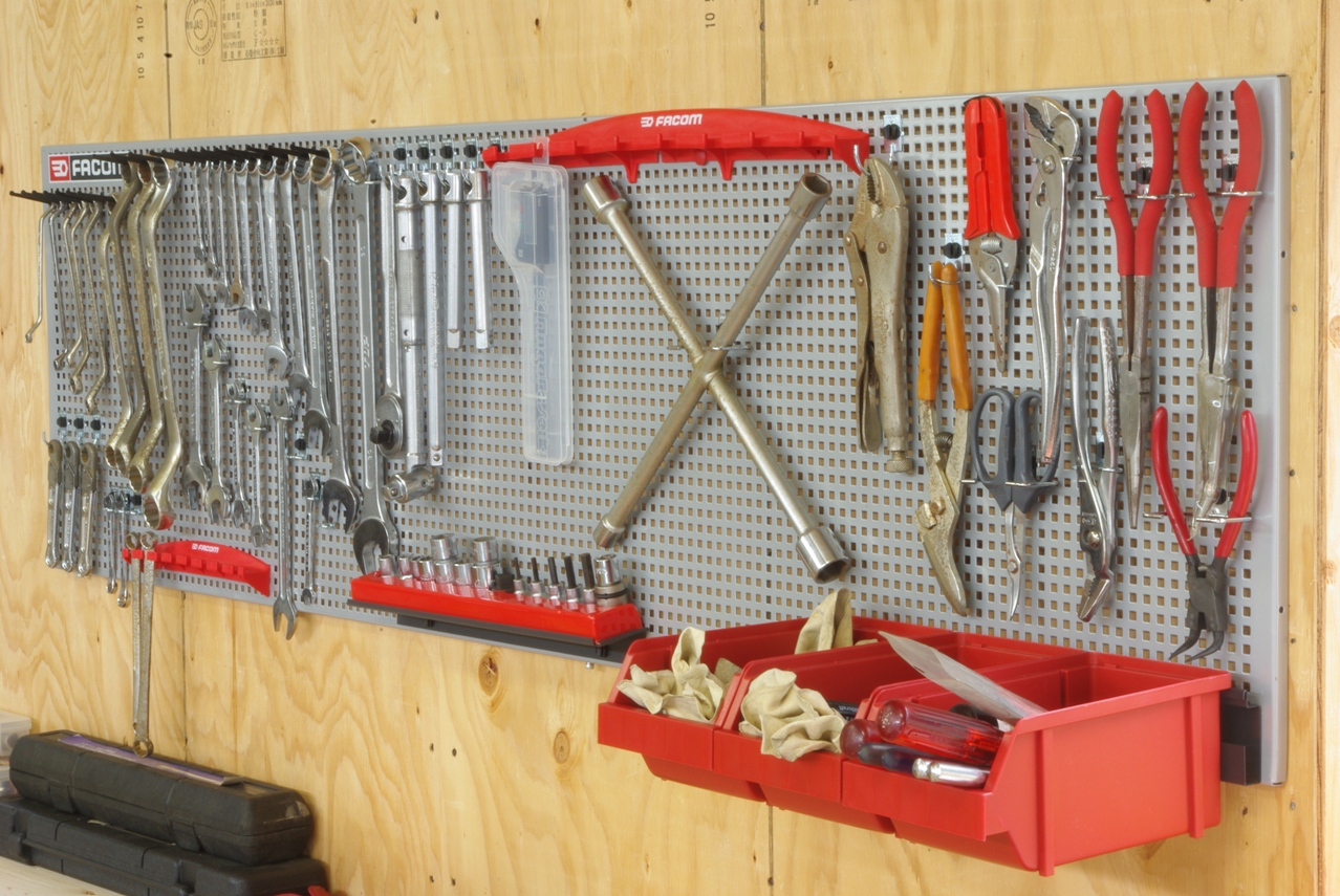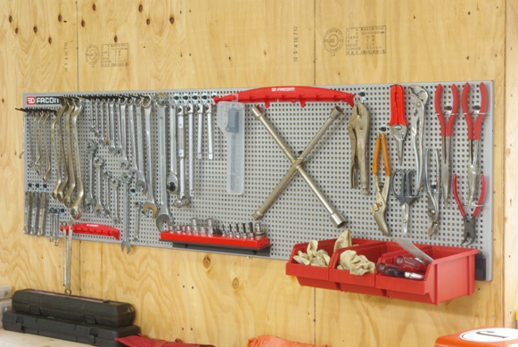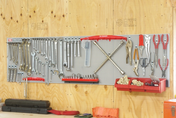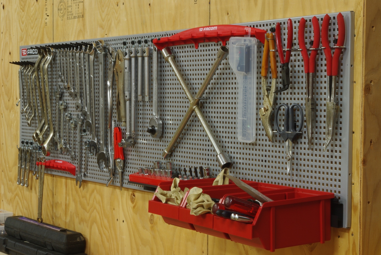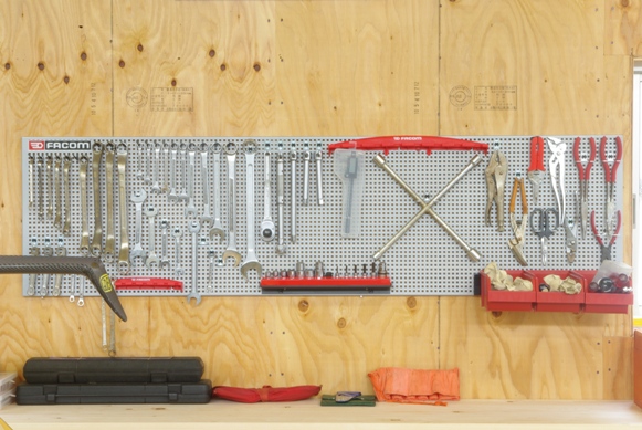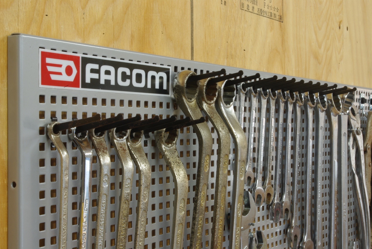 本日はFACOM CKS PANEL HOOK SYSTEM に工具を整頓するため、先日届いた追加のフックパーツを使って、パネルにディスプレイしてみました。