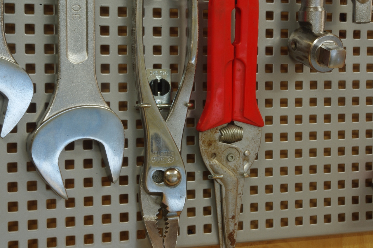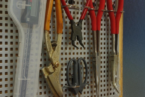 バイスグリップ、プライヤー、ハサミやペンチ類を全て右端に移動しました。