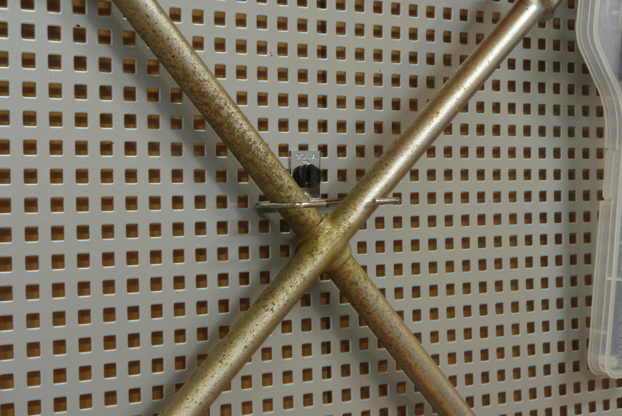 このCKS.55A(大)というフックは、思った以上に幅が広かったので用途は限られますが、この十字レンチを掛けるアイデアはかなりイケると思います。