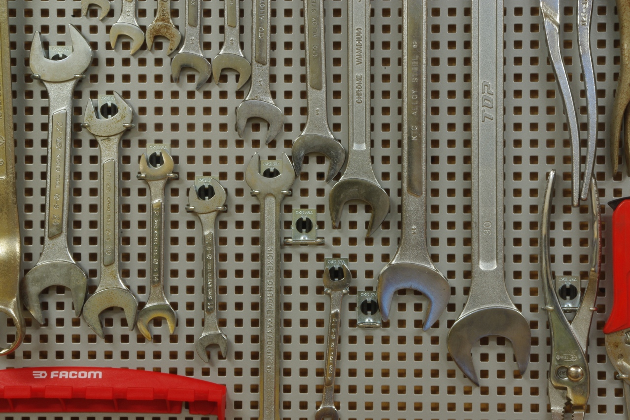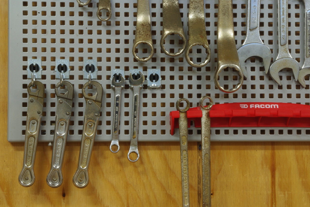小さいスパナ類を掛けています。