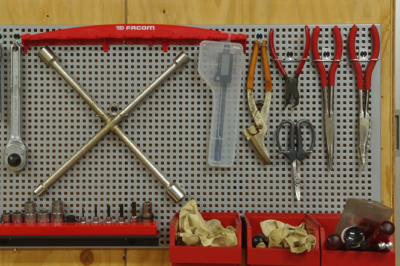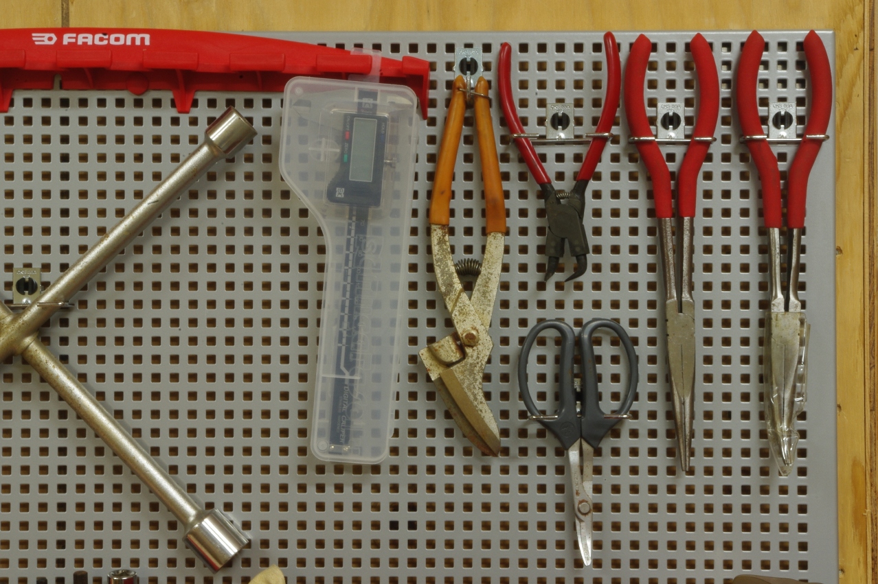 とりあえずこれまで使ってきた工具の中から、出来るだけ使用頻度の高そうなモノを選んでレイアウトしました。