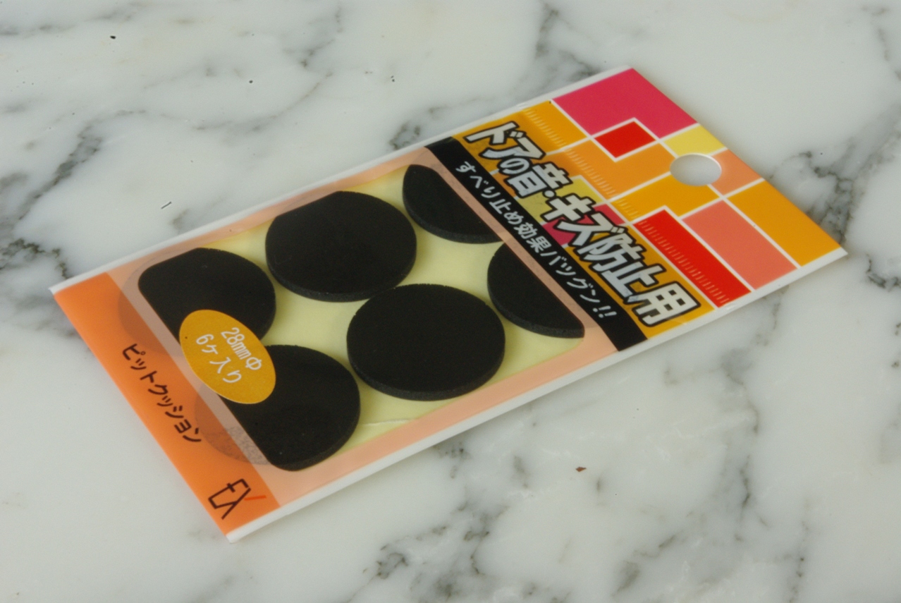 今回の用途は、ガレージの談話コーナー専用テーブルを製作するときに、テーブルの足裏用滑り止めとして使用するためこの黒の28oφのウレタンフォームのピットクッションを購入しました。