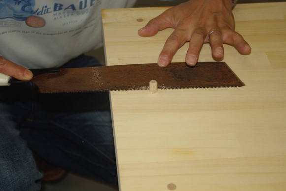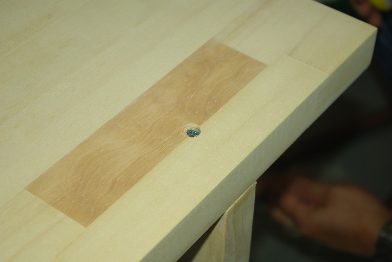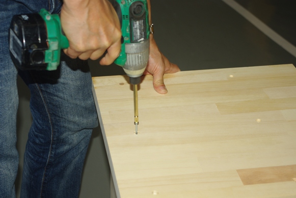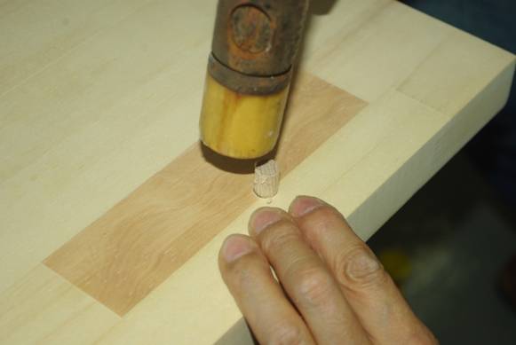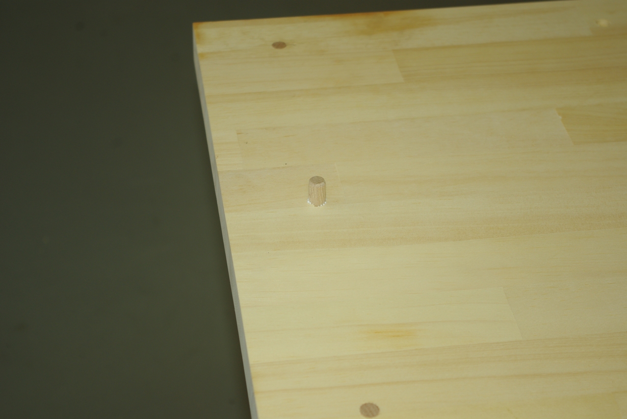 こうしてネジ止めした後、ダボ材にボンドを塗布して打ち込みます。