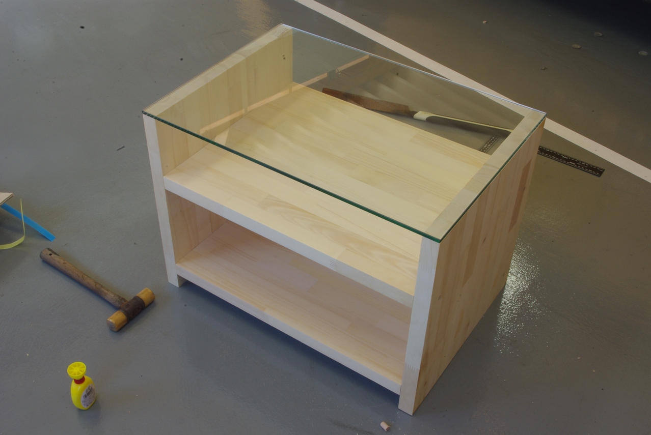 ガラス天板は両端2辺だけで受けて空中に浮かせる構造のため、強度的な余裕を見て8o厚の強化ガラスを使用することにしました。