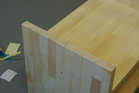 製作中に気付いたことですが、木材木口面の直角の精度が高いので、側板と棚板の直角がかなり正確になりました。