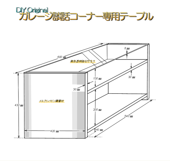 因みにガラステーブル天板は、この時点で既に見取り図のサイズで注文してあります。