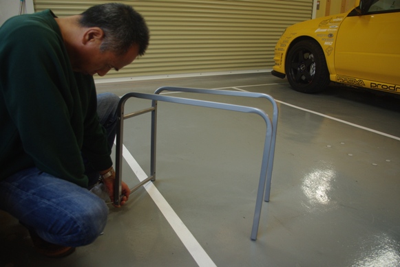 パンチングボードになっているスチール製の棚は、当初フレームの上に乗せるだけの形状だと思っていましたが、よく見ると一旦仮組したステーを外さなければ取り付けできないことが判りました。