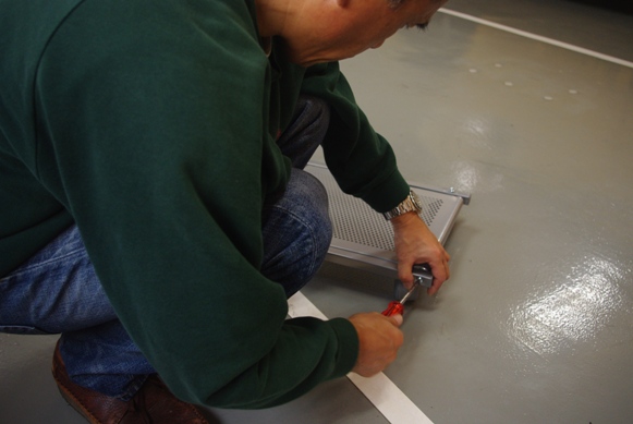 たまたま今回購入したサイドテーブルの天板に丁度良いサイズですので、これに固定用ボルトの穴開加工を行います。