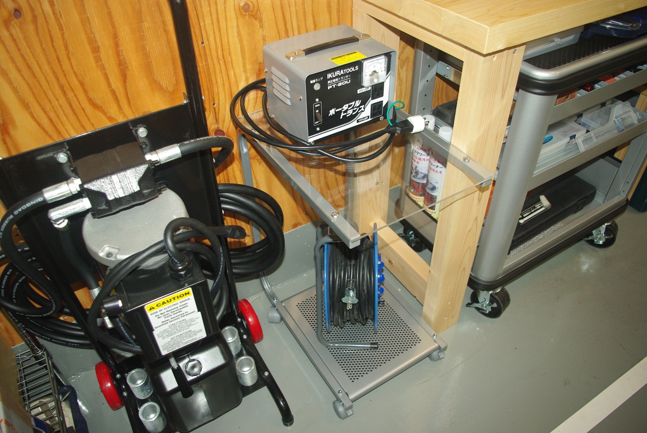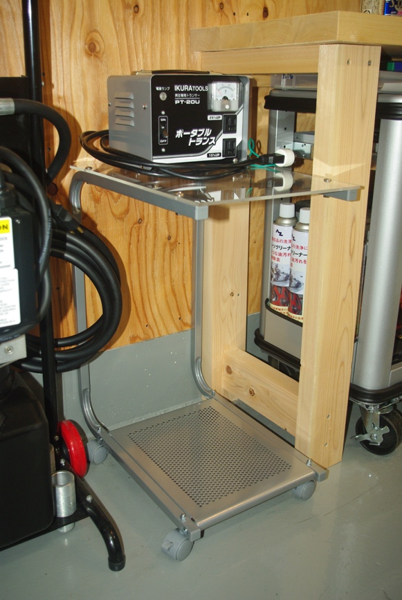 以前Maxjax Portable Lift 用に購入した育良精機のポータブル昇圧トランスの置き場所を予てから思案していました。
