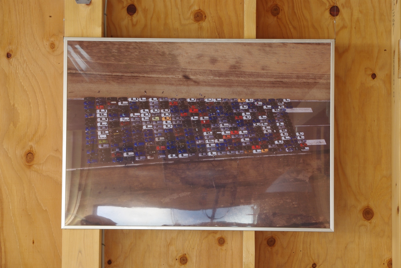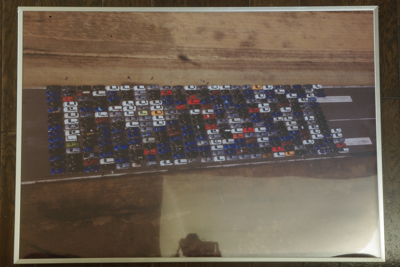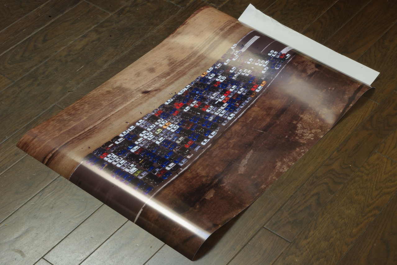以前からB2版のホビーパネルがひとつ空いていましたので、スバル・カーモザイクの空撮画像を入れてガレージに飾ろうと考えました。