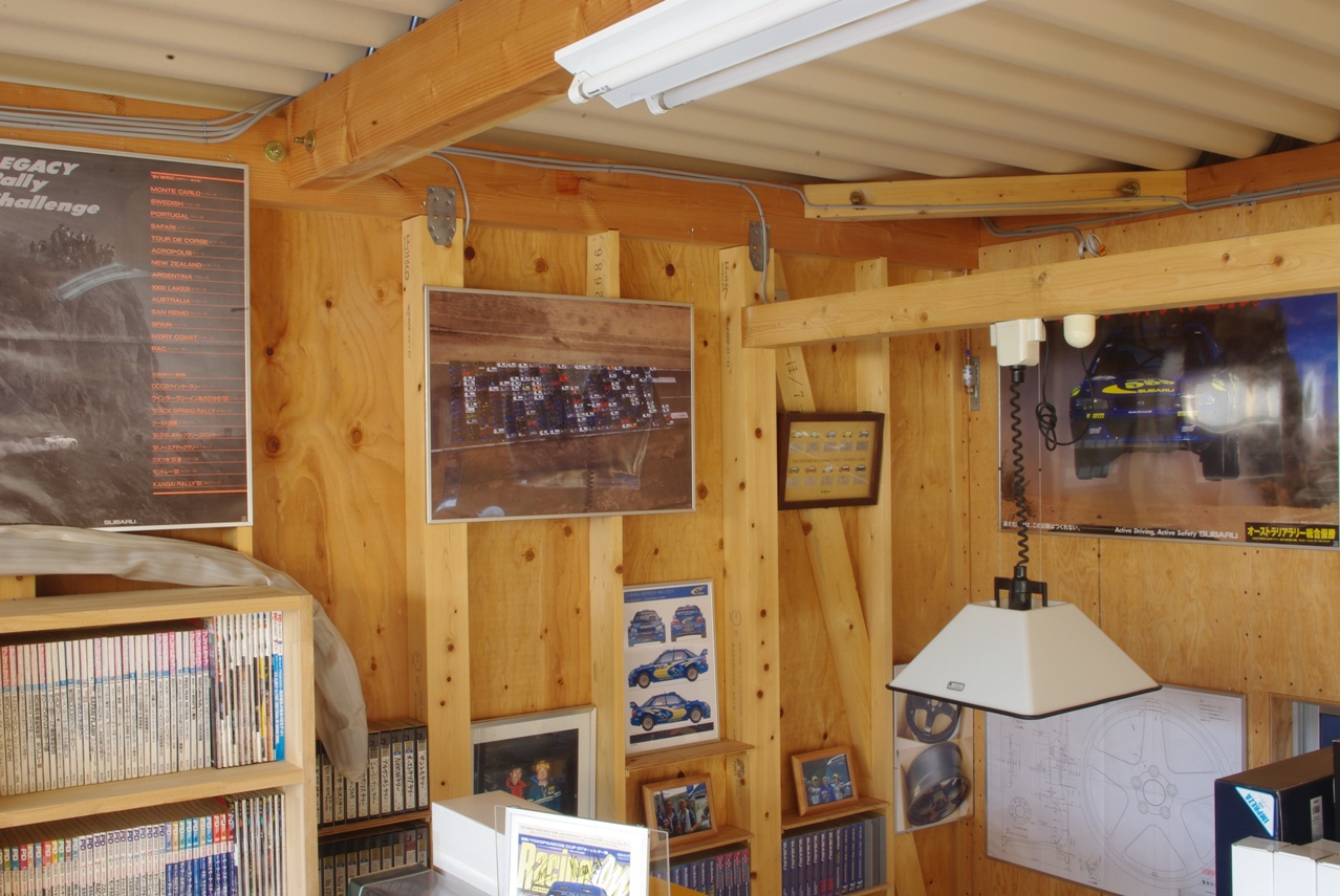 ガレージの談話コーナーの壁にディスプレイしました。