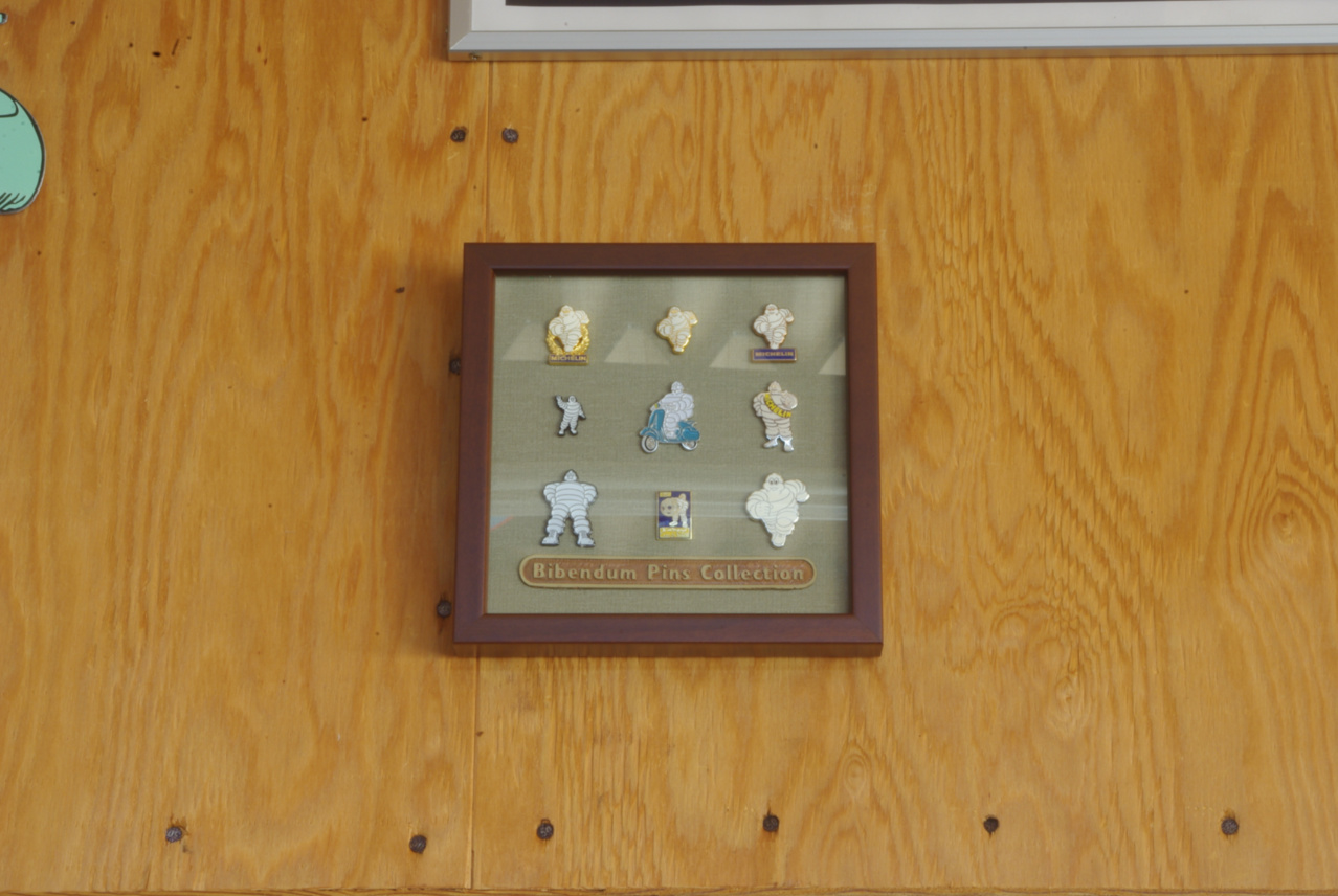 2020年7月31日から少しづつヤフオクなどで買い集めたBibendumピンズが一定の数に達しましたので、その後鋭意額装してガレージに飾りました。