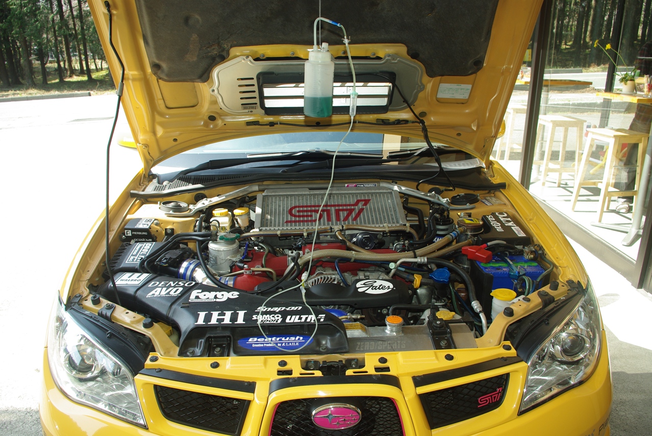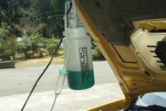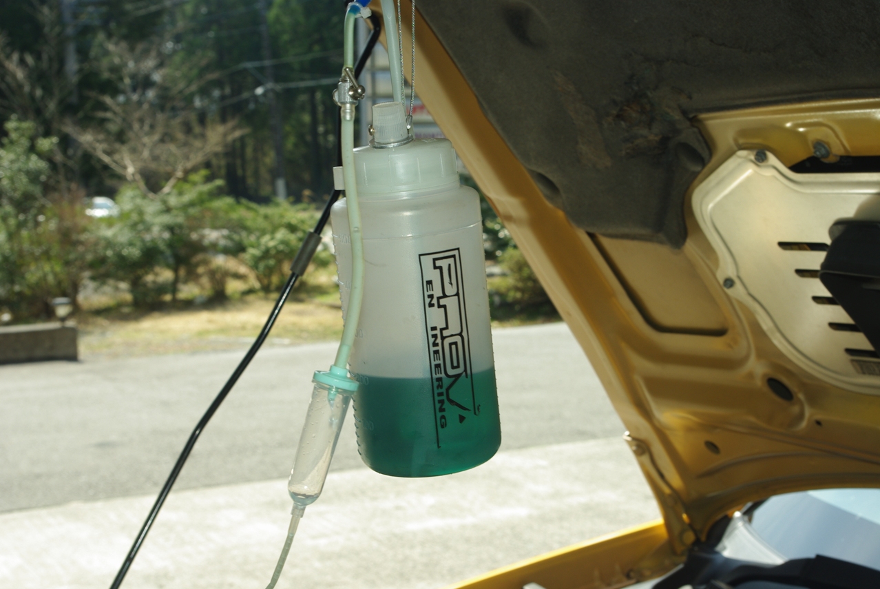 エンジンを掛けて薬剤をエンジン内部に注入していきます。