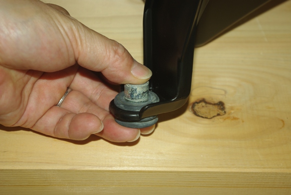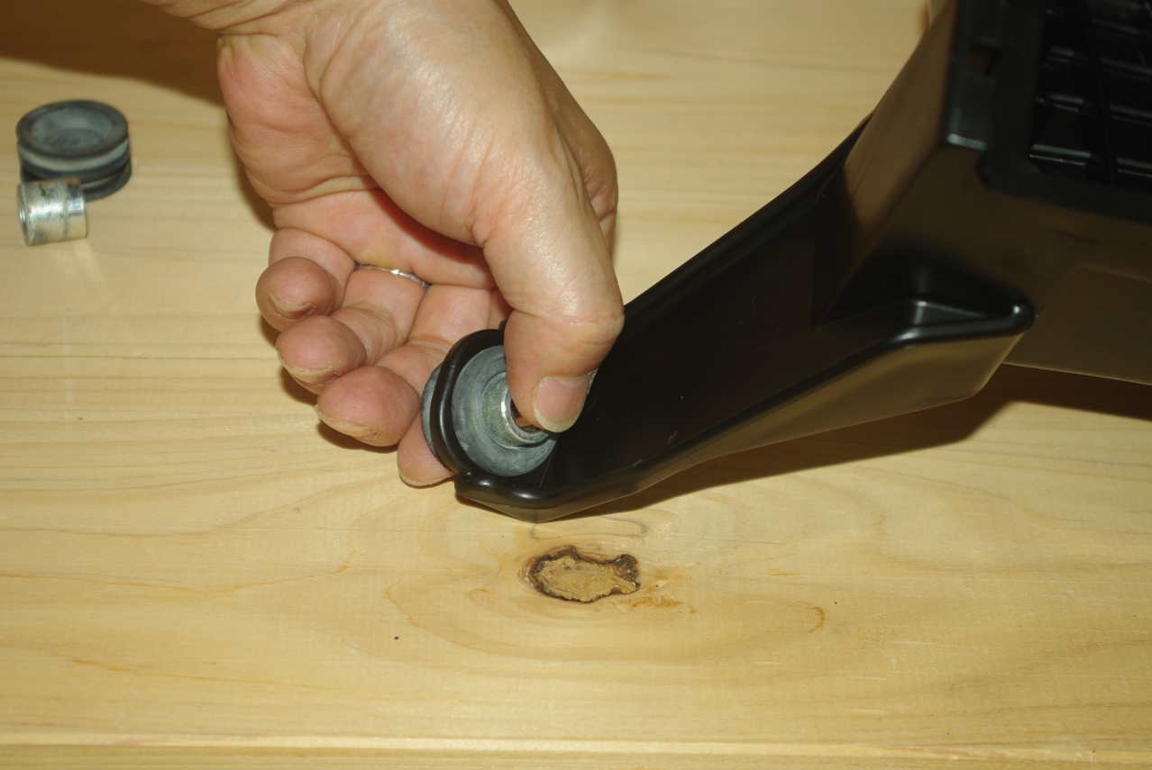 外したときと逆の手順で、まず新品のロアーケースの脚部にクッションを取り付けます。