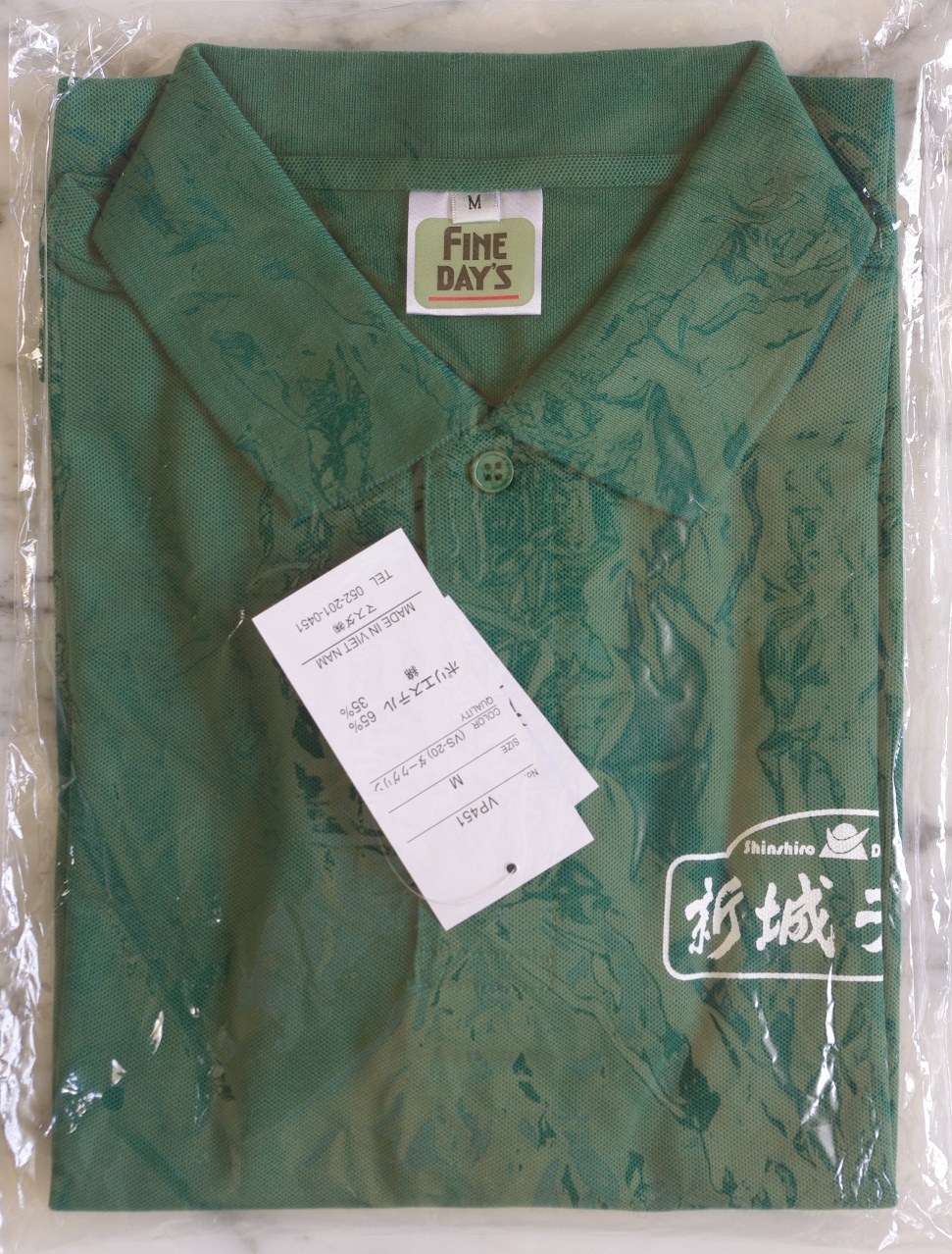 全体はモスグリーンの新城イメージカラー、鹿の子織りのポリエステル・綿混紡生地のオーソドックスなスタイルとなっています。