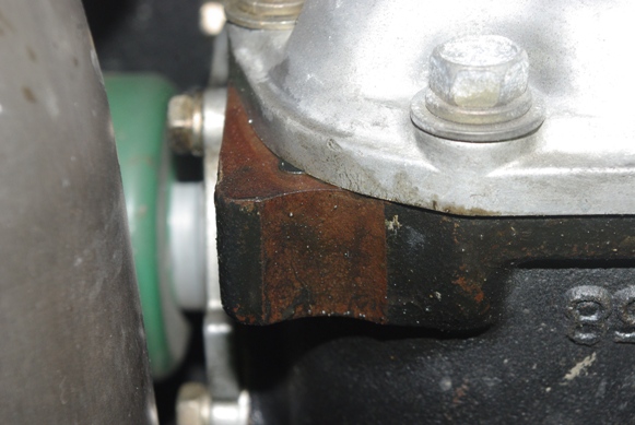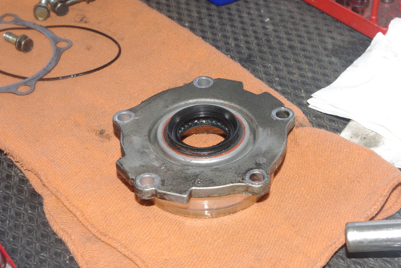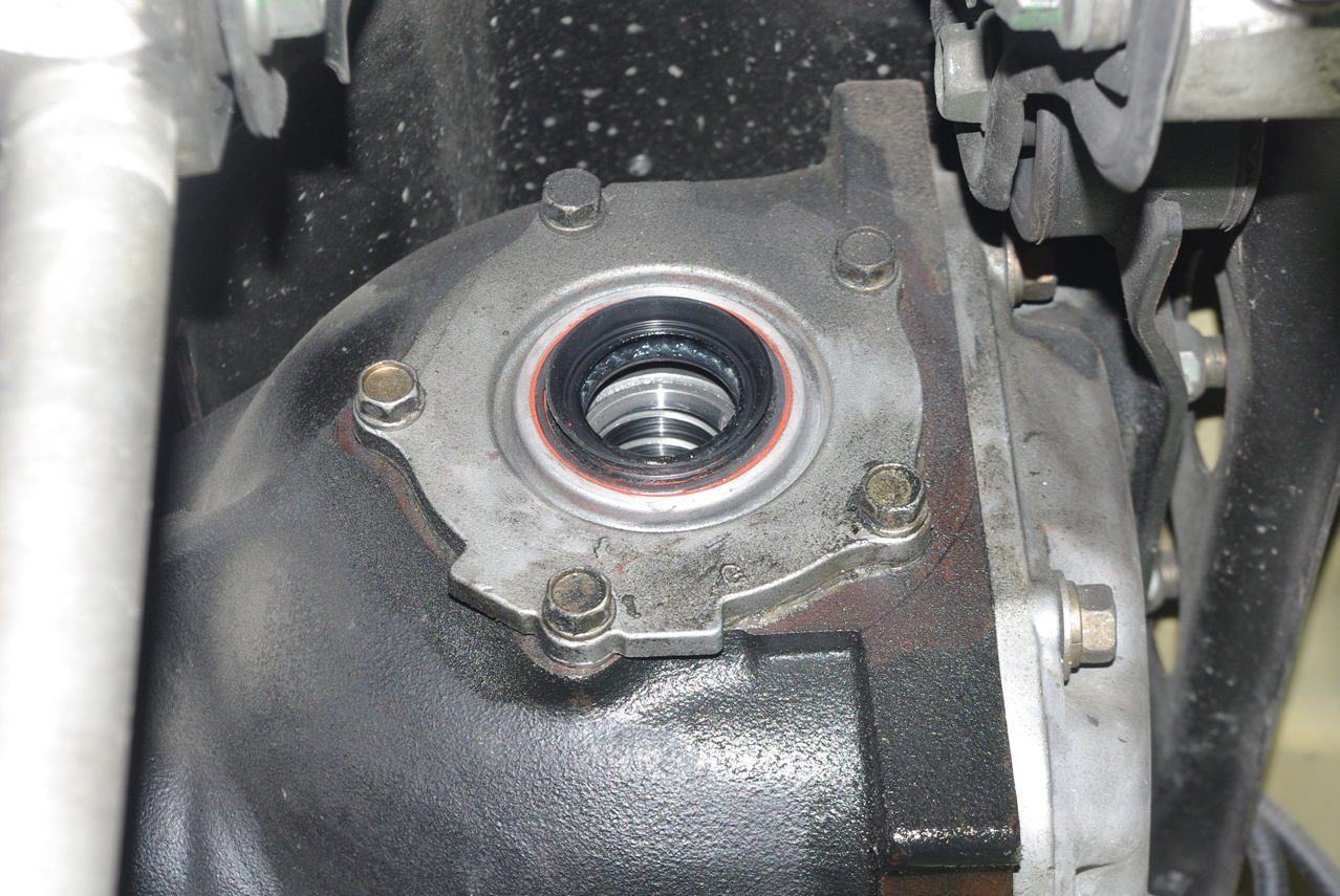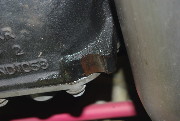 デフケースのカバー取付用フランジの耳の部分が、全面オイルで湿っています。