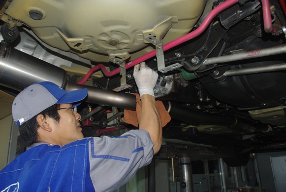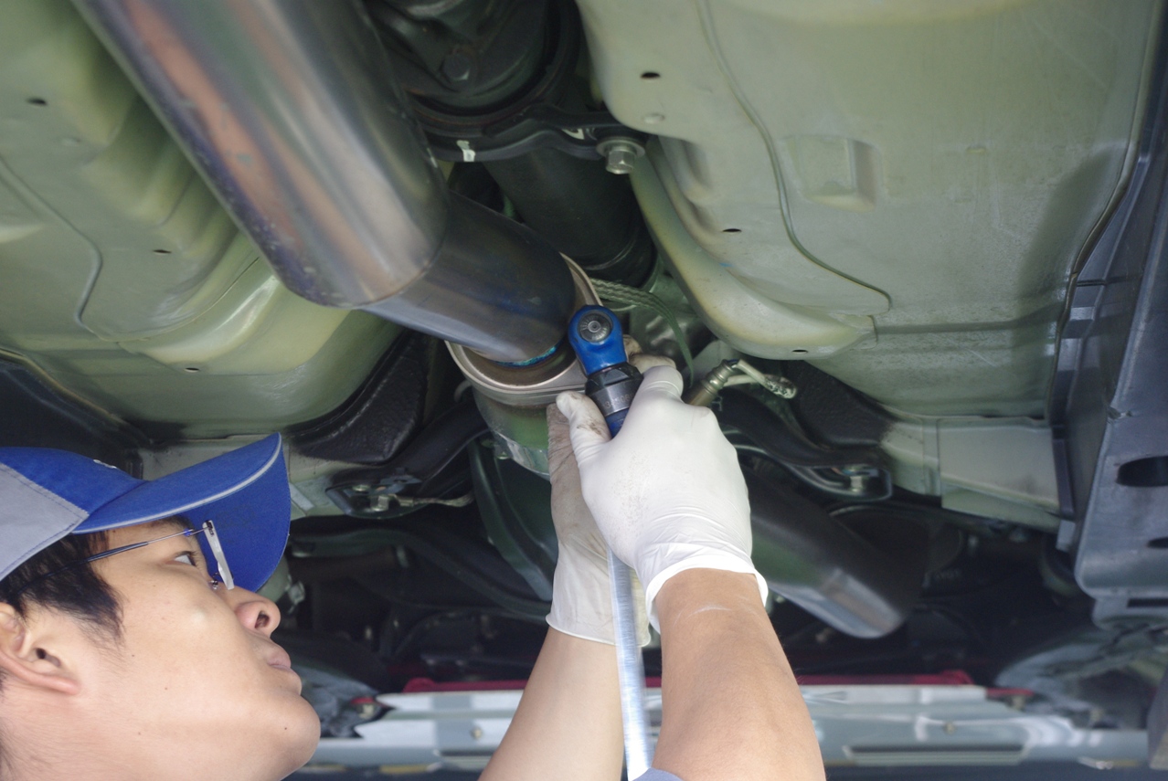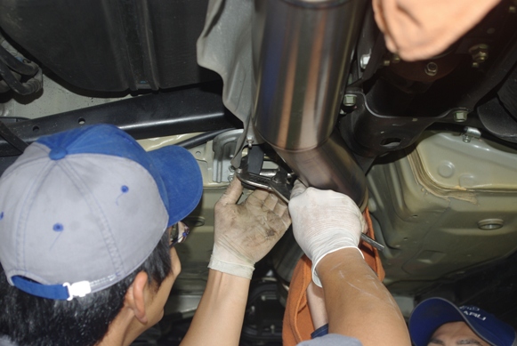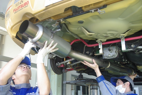 強化マフラーハンガーは、取り付けるときにも力がいります。