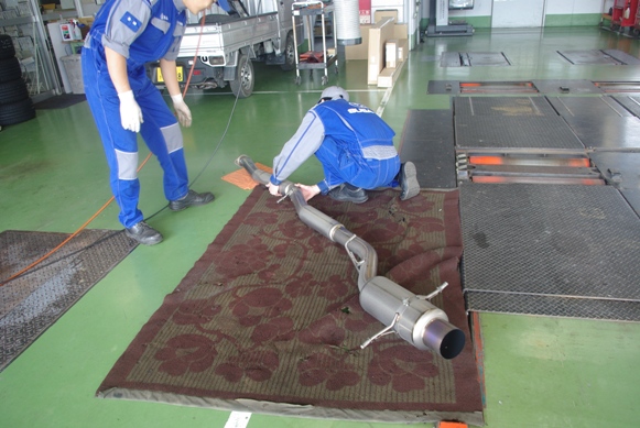 マフラーは床に直接置かずに、こうして下にマットを敷いて下さいました。