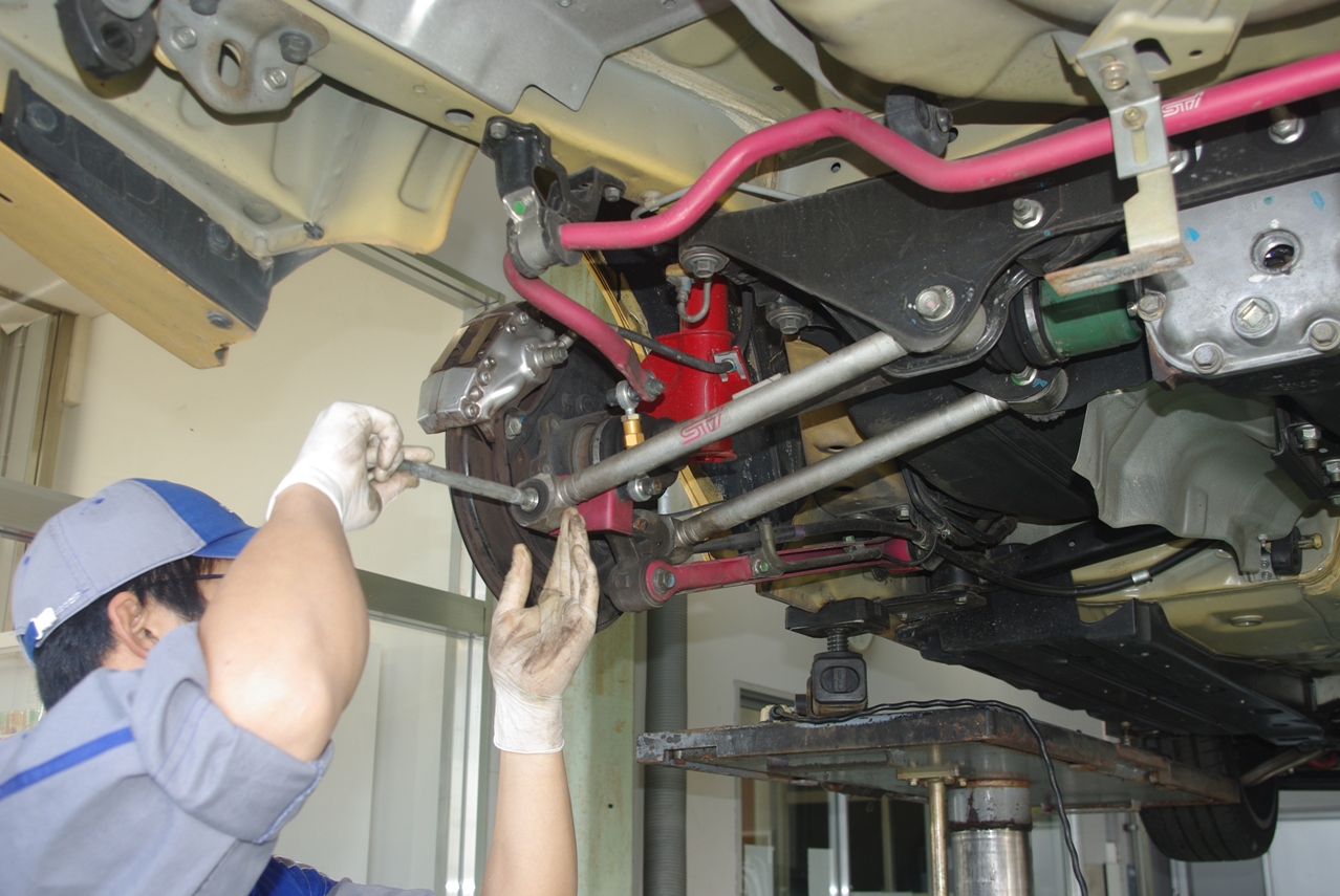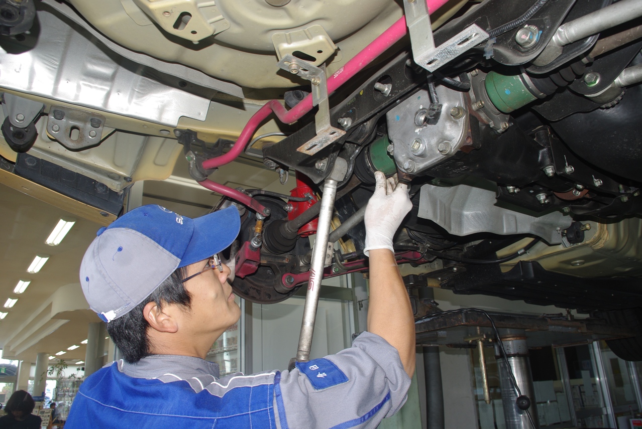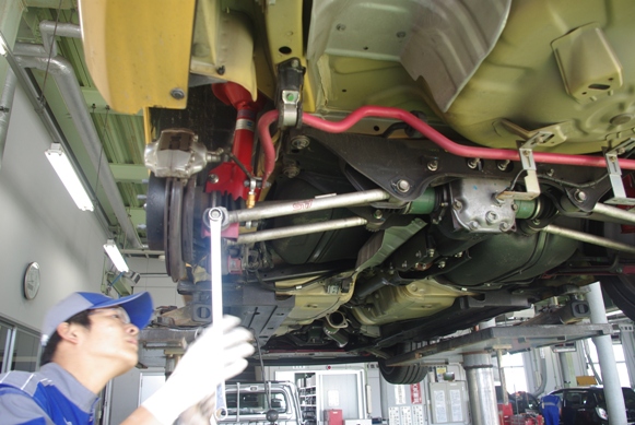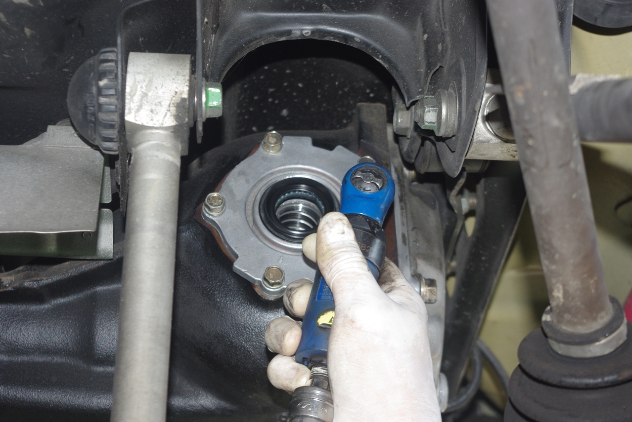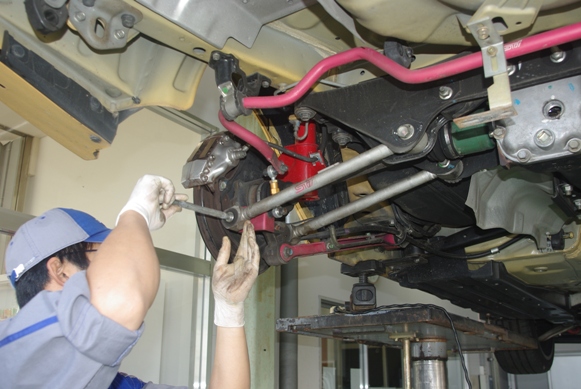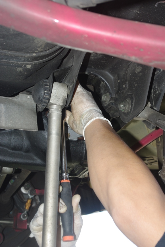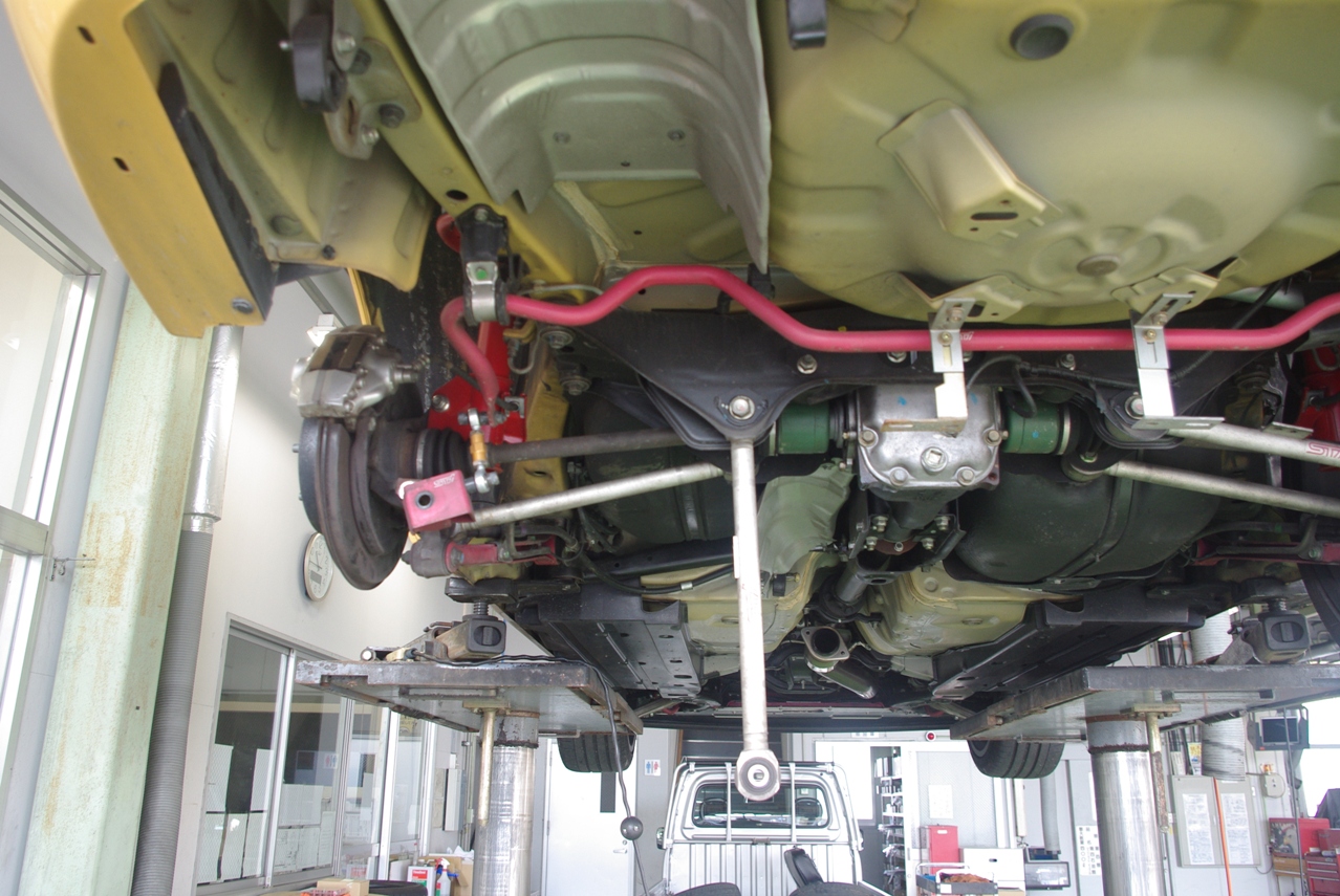 ハブユニットに前後ラテラルリンクを結合するボルト/ナットを、規定のトルクで本締めしました。