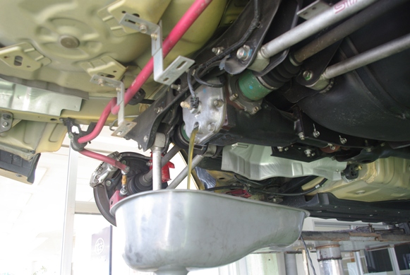 余分なデフ・オイルが抜け切ったのを確認して、フィラープラグを締め込み、センサーのカプラを元に戻しました。
