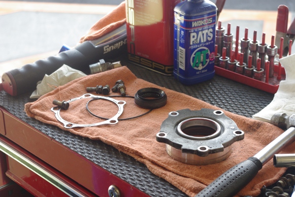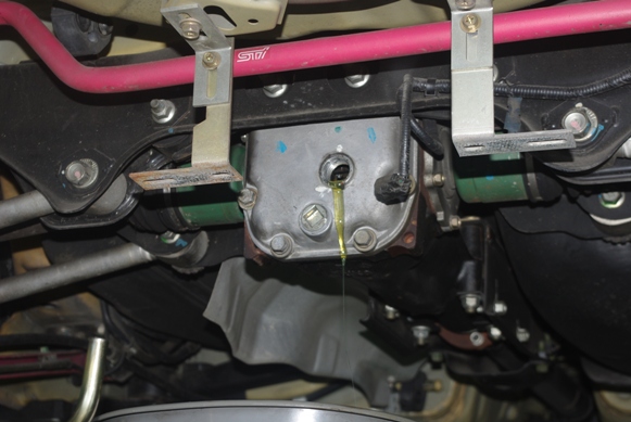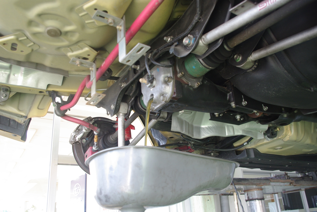 今回はリア・デフオイルも新品交換しますので、ドレンプラグを抜いて、デフ・オイルを全て排出しました。