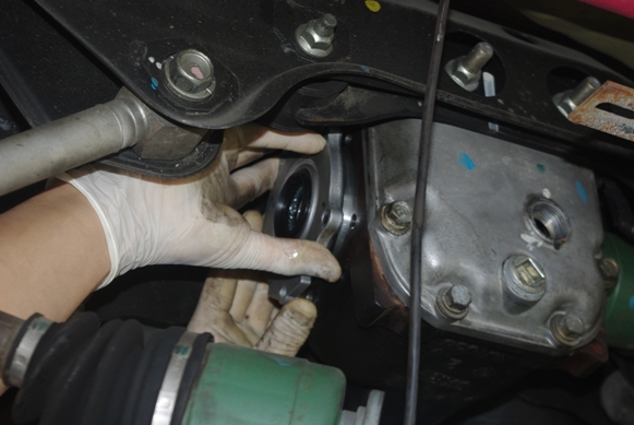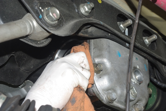 そして前後ラテラルリンクをハブユニットに結合するために、ボルトを差し込みます。