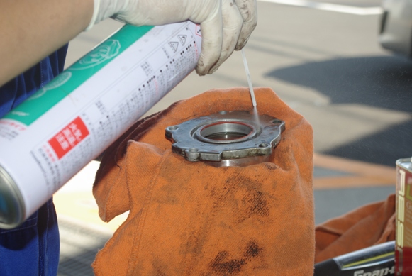 オイルの排出を確認してから、ドレンプラグに液体ガスケットを塗布してドレンホールにねじ込みました。