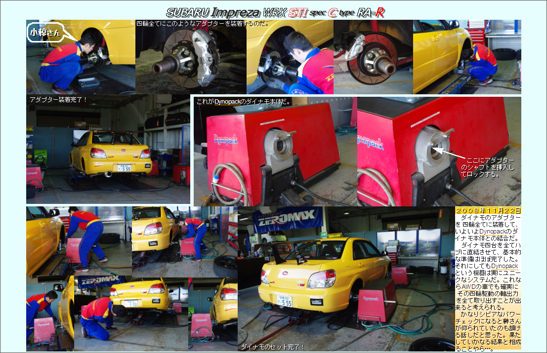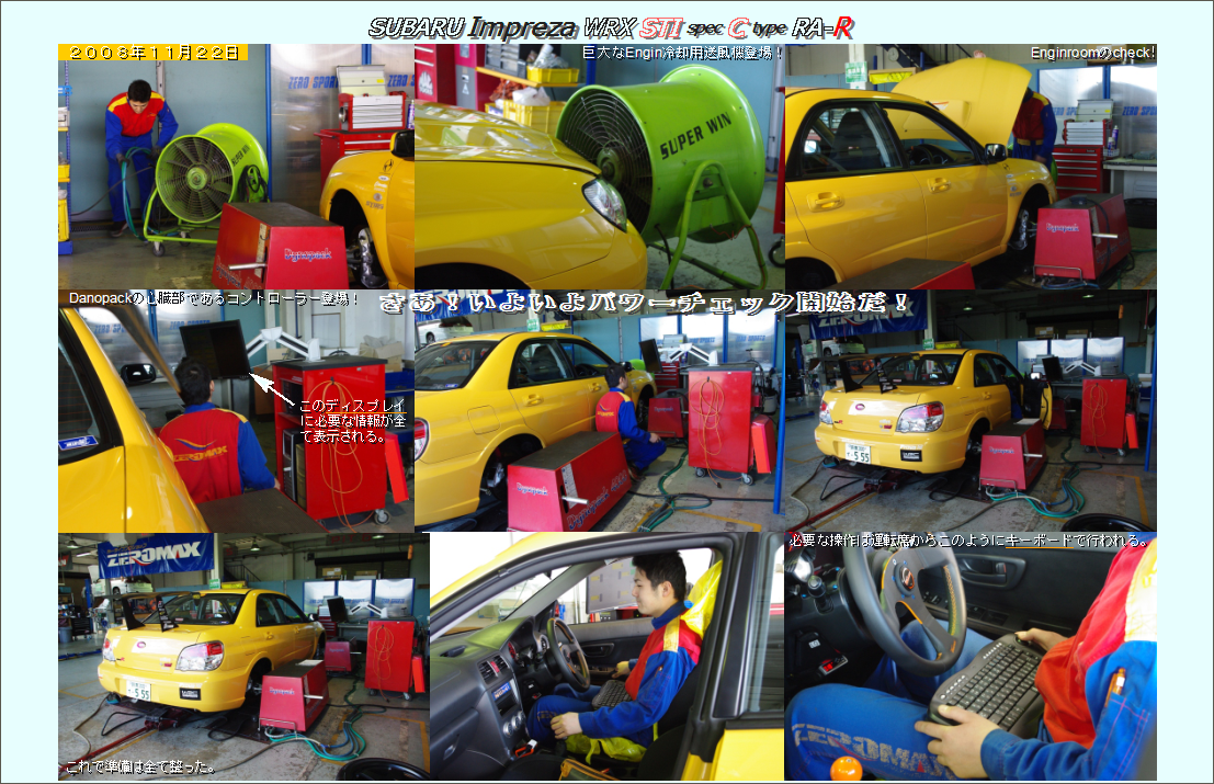 2008年11月22日 ZERO/SPORTSにて初めてのパワーチェックを実施しました。通算10回目の純正ECU書換を実施して、マフラー、フロントパイプは純正でのチェックです。さらに、パワーチェック実施中、同時にDATA