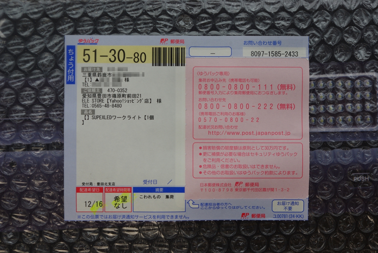 何分注文したのが土曜日の深夜でしたので、「あすつく対応」商品でしたが昨日発送の本日到着となりました。