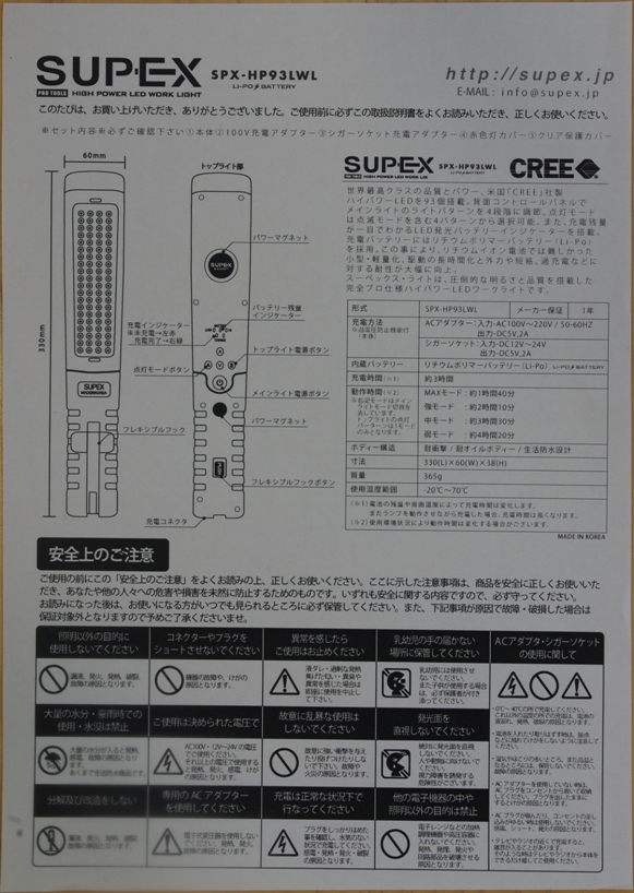 その点このSUPEX SPX-HP93LWL は、それらの実用面では他を圧倒する性能です。