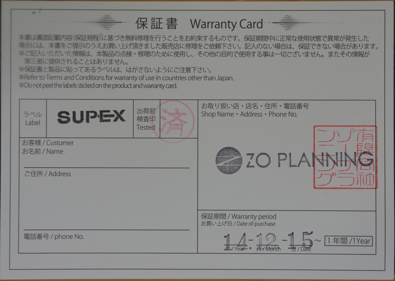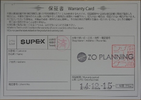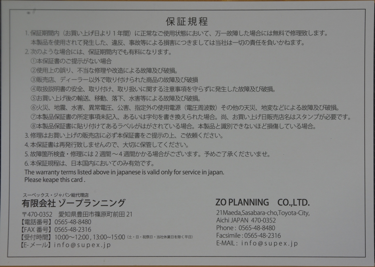 因みに、販売元の豊田市にあるZO PLANNINGというデザイン事務所が、スーペックス・ジャパン総代理店ということらしいです。