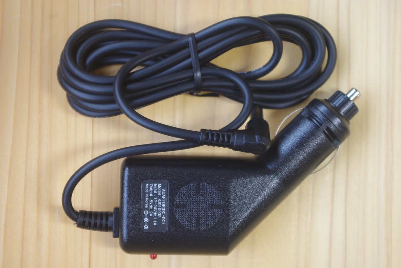 シガーソケット充電アダプター(左)と、100ボルト充電アダプター(右)です。