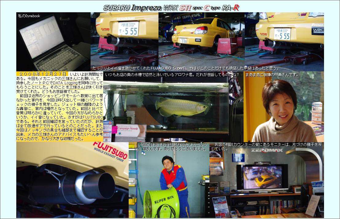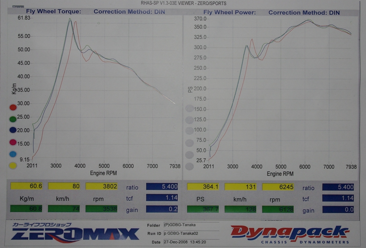 2008年12月27日 先月ZERO/SPORTSにおいて、パワーチェックを実施しましたが、その後マフラーとメタルキャタライザーをFUJITSUBO製に換装し、純正ECUもその後少しDATAを変更しましたので、本日再びZERO/SPORTSにてパワーチェックを行いました。また、今回はノッキングの有無も計器にて測定していただきました。もちろん前回と同様、持参したノートPCにて各DATAのLOGGINGも実施しました。結果は下へスクロールして下さい。