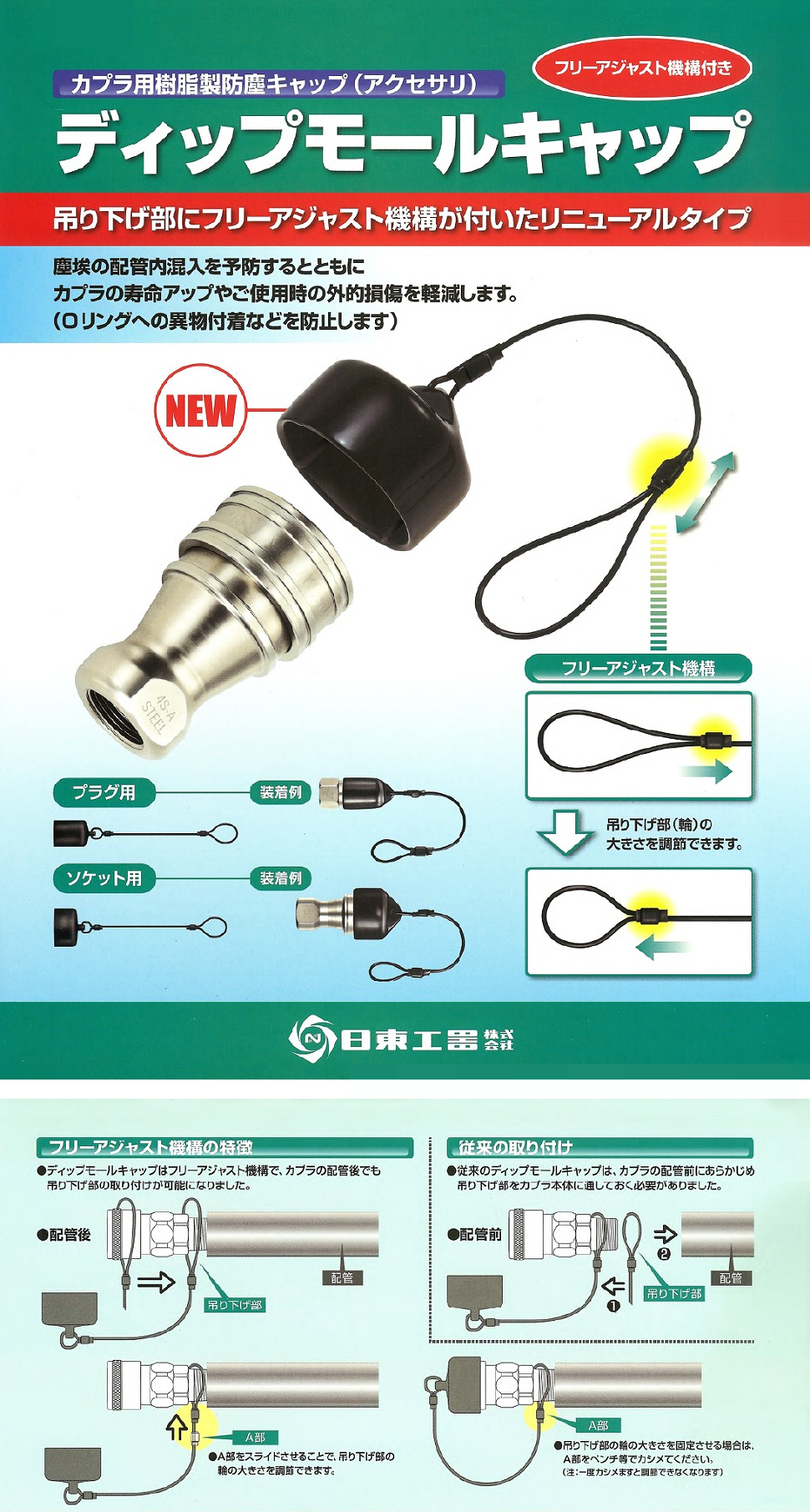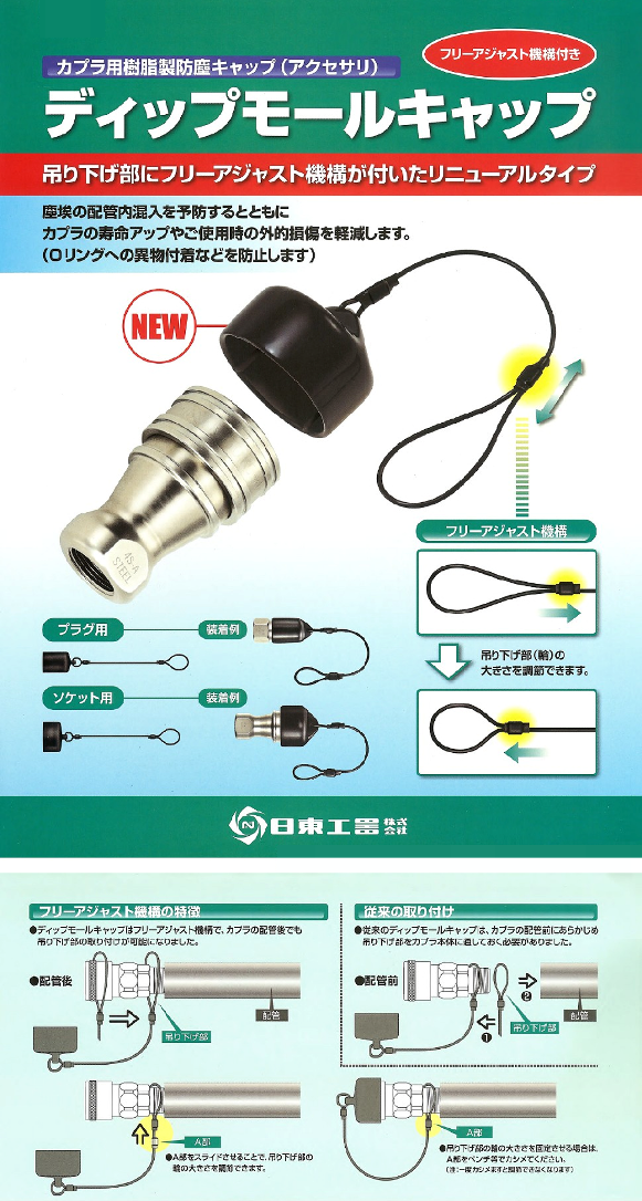 カプラの大手メーカーである日東工器カプラ用樹脂製防塵キャップディップモールキャップ」という製品です。