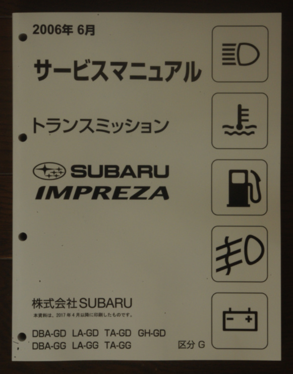 そして代車を貸し出して頂くと同時に、2ヶ月ほど前に注文してありました、サービスマニュアルのトランスミッション編を頂戴してきました。