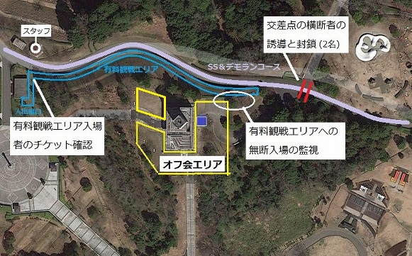 SSコースと交差している道路のギャラリー誘導は、このほど私達「青い軍団」が任されるオフィシャル業務の中でも、最も重要な仕事になると思います。