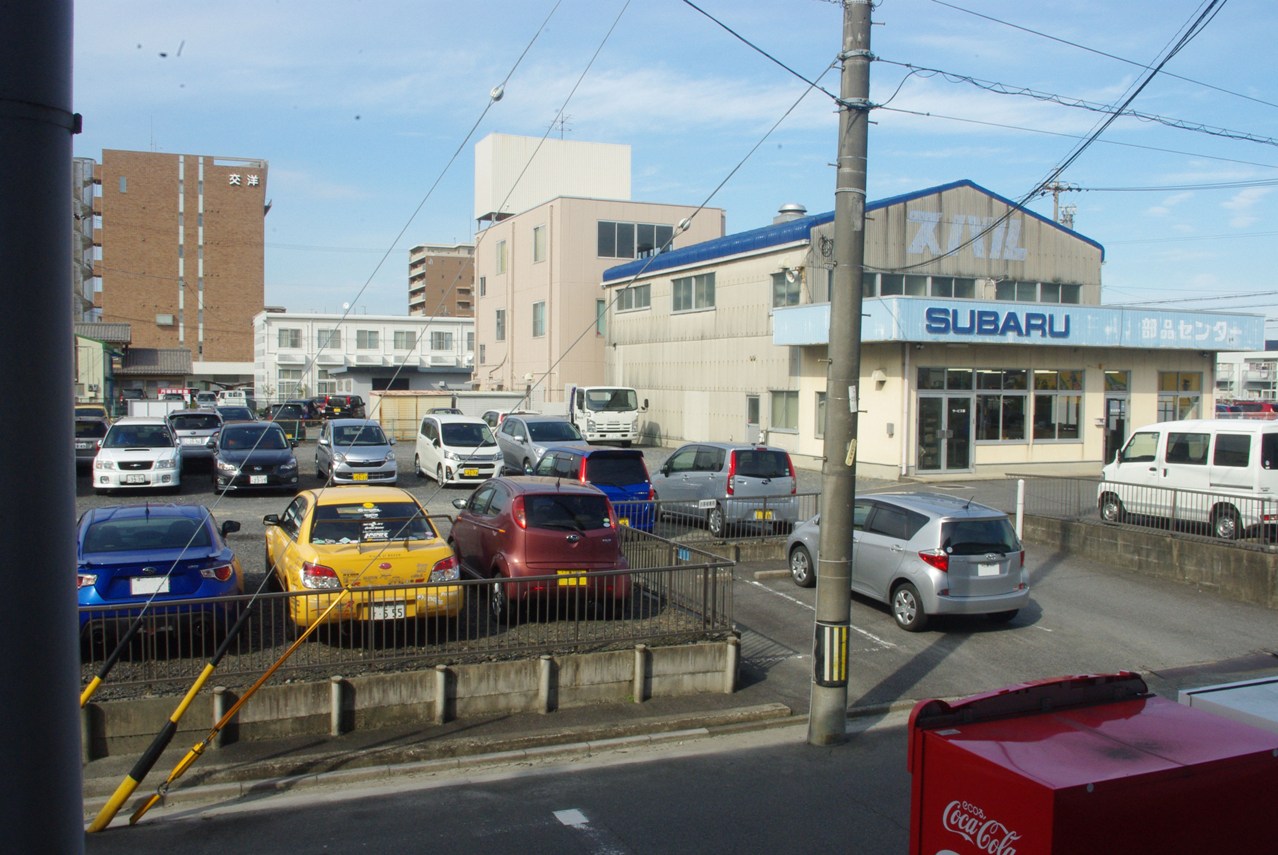 向こうに見える「SUBARU」の建物が、よくお世話になっている部品センターです。