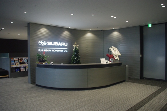 ここが富士重工業株式会社の本社受付カウンターのあるロビーです。