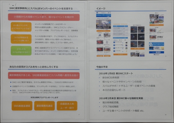 みなさんそれぞれ活発に意見を発表し、冒頭のメール案内の通り年明けとともにリニューアルされるSUBARU WEB COMMUNITY の将来像について熱く語り合いました。