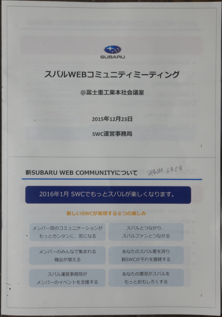 是非!このミーティングで多岐にわたって討議された内容を充分に活かして、今後10年、いや30年はスバルユーザーが楽しく集えるSUBARU WEB COMMUNITY を創り上げて下さることを願います。
