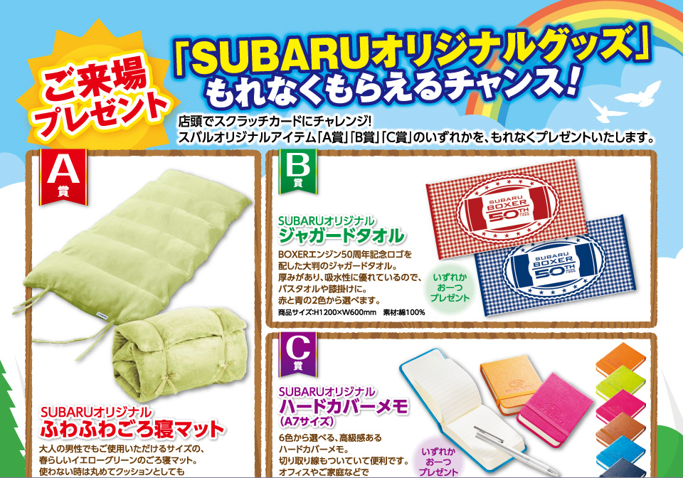 もちろん目当ては感謝デイのSUBARUオリジナルグッズです。
