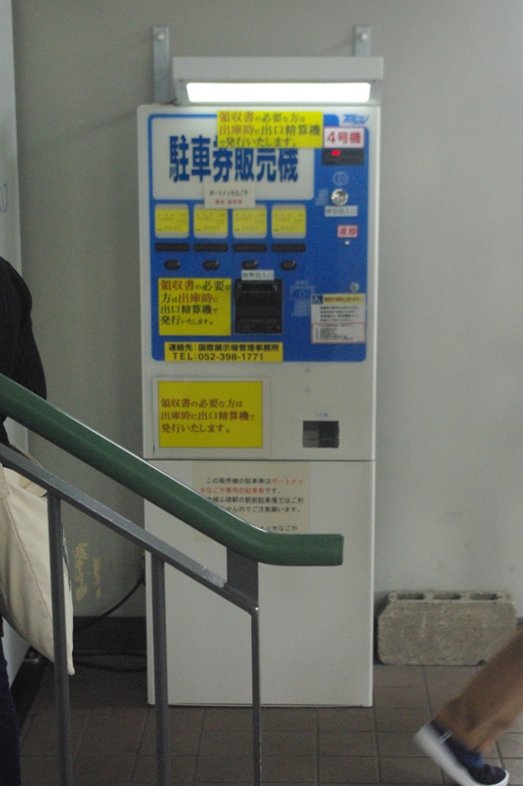 駐車場の昇降口に券売機がありますので、先に駐車券を購入しておきます。