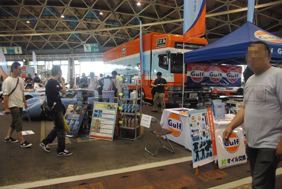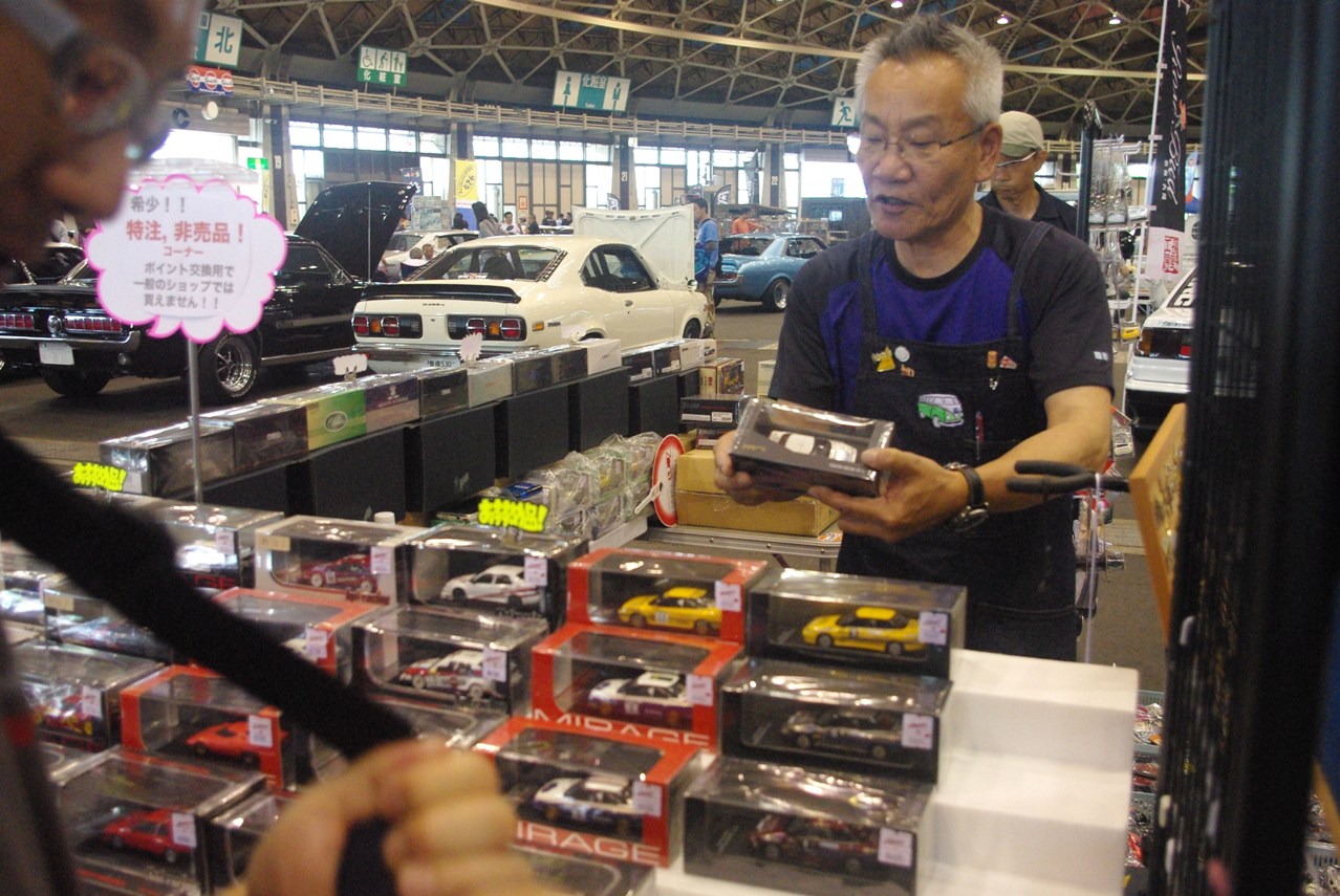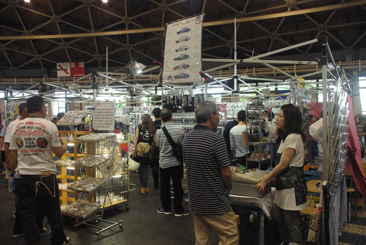 コチラのミニカー、ステッカー、ガレージ雑貨、Tシャツ等販売のショップエリアは多くの人で賑わっていました。