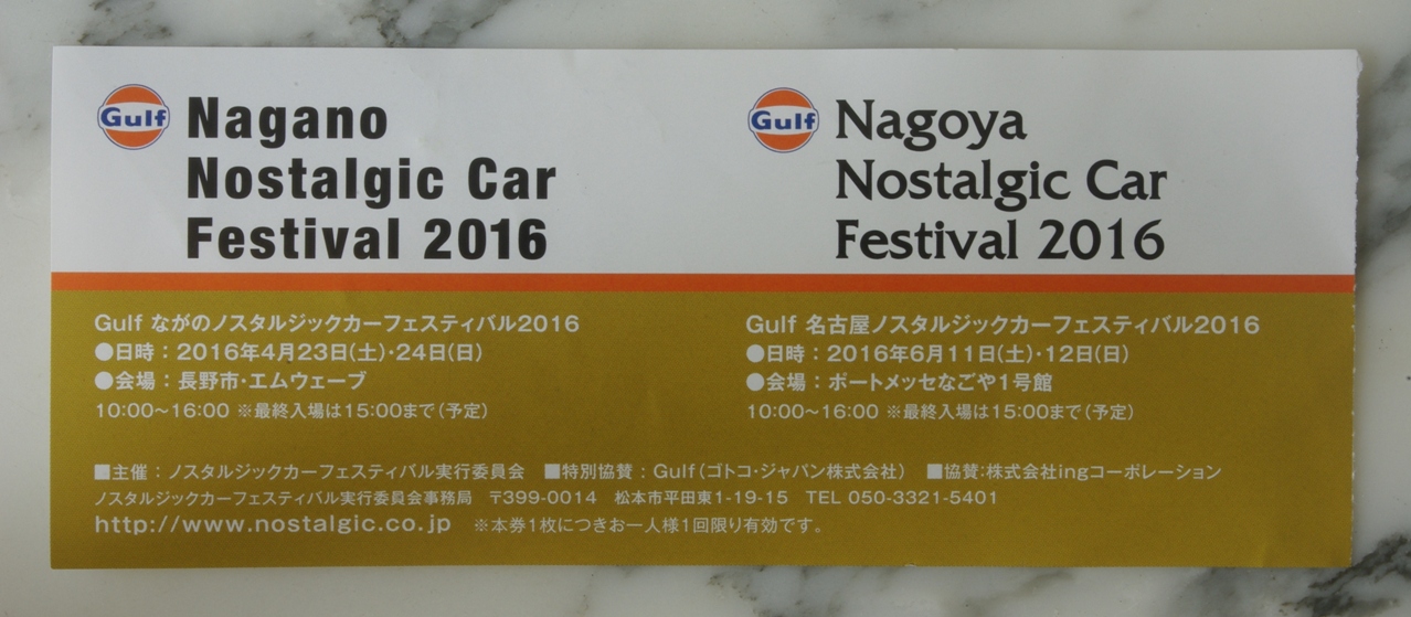 またこちらのチケット(招待券)をくださった中嶋さんのお知り合いのクルマ屋さん(ゴメンナサイ未だにお名前を覚えません)には、今年も良くして頂きましてありがとうございました!